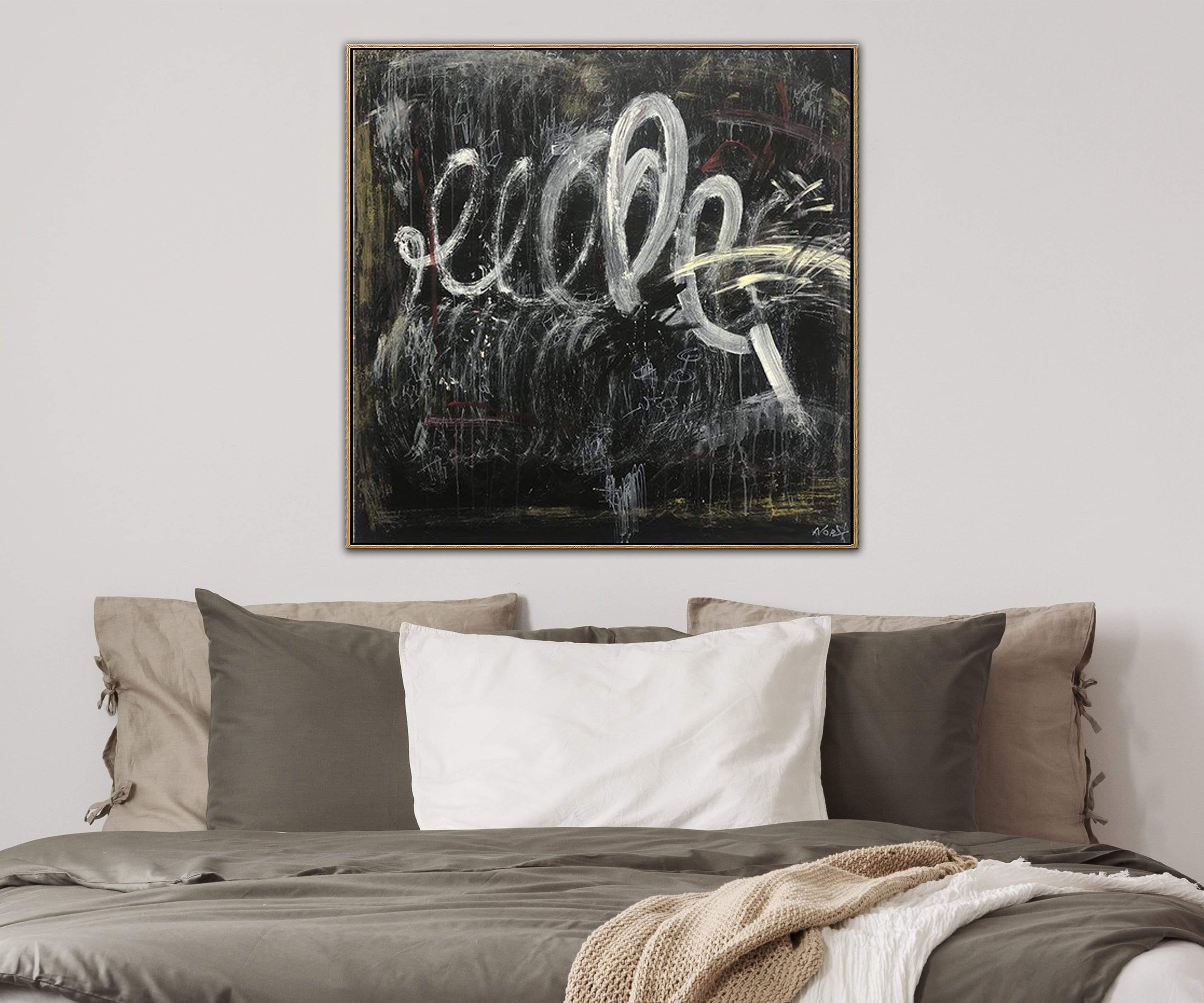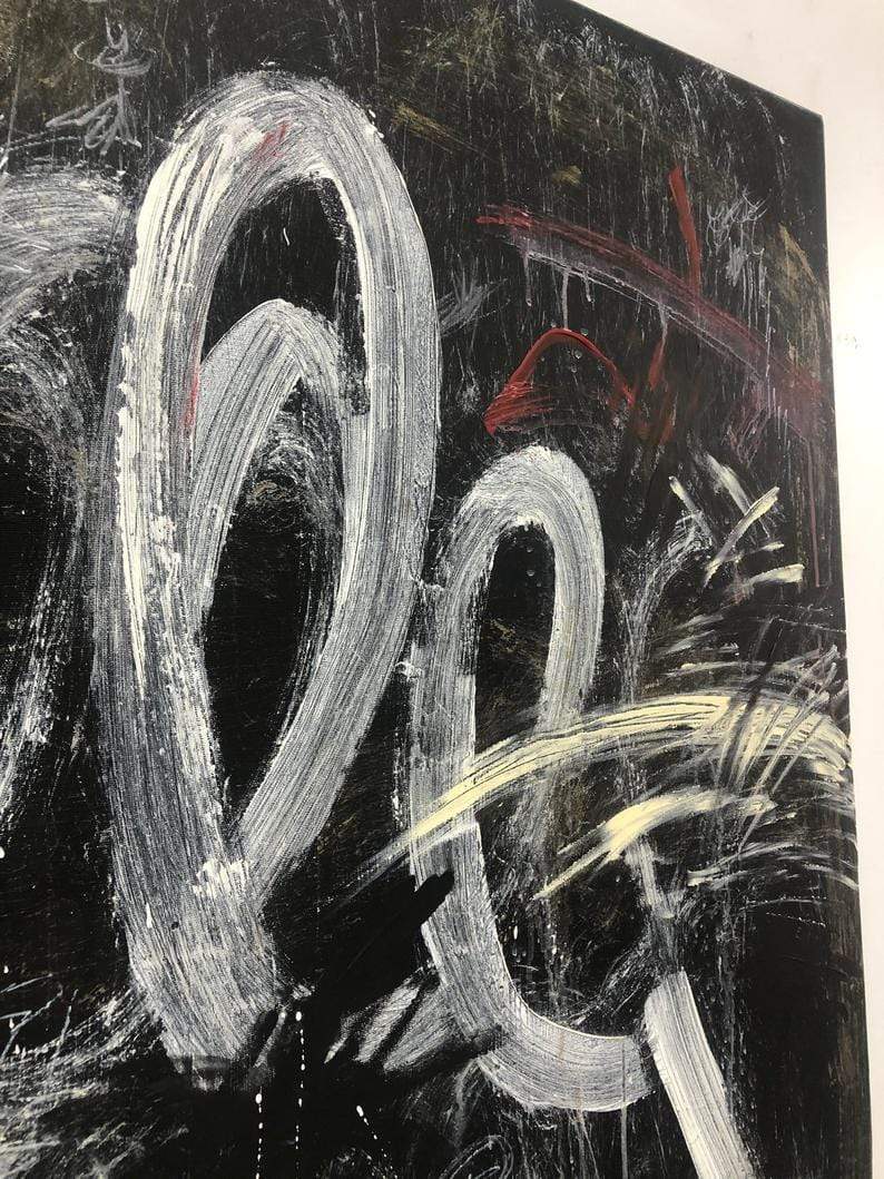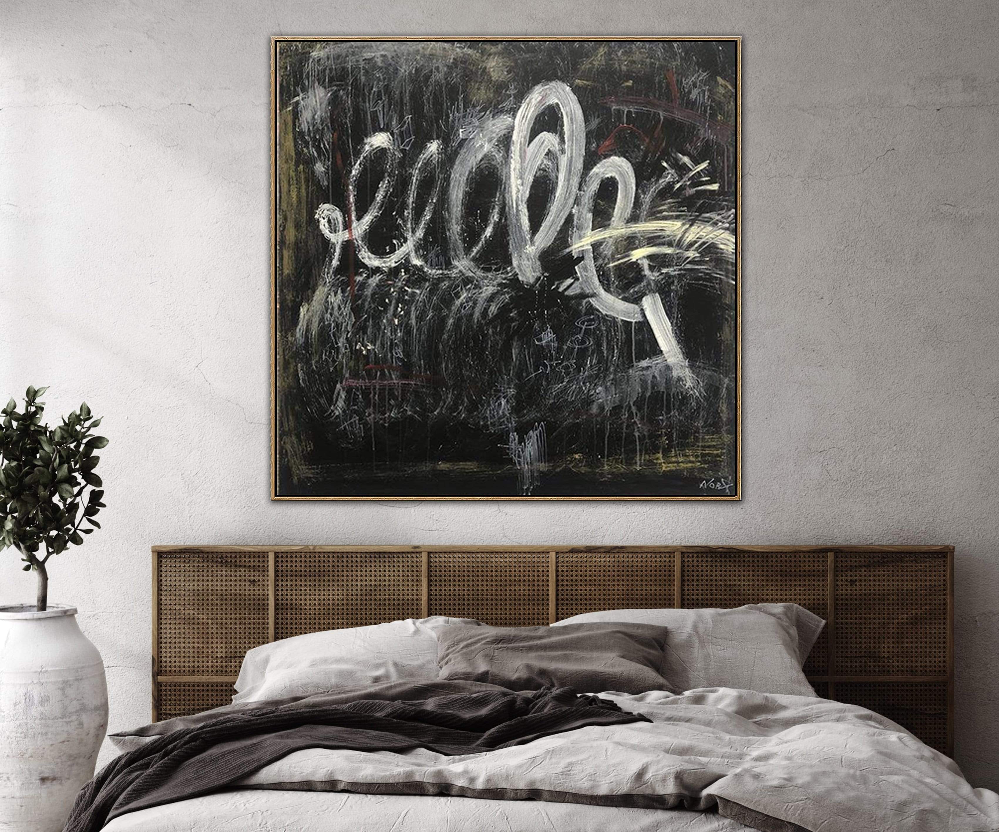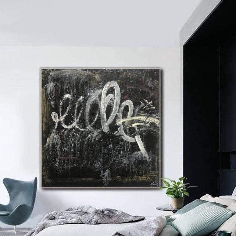 Große schwarze und weiße Ölgemälde auf Leinwand Abstrakte Kunstwerk Moderne Wandkunst | WAVE OF A MAGIC WAND - Trend Gallery Art | Original abstrakte Gemälde