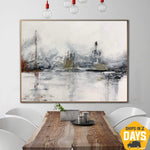 Abstrakte graue und weiße Gemälde auf Leinwand Original moderne neutrale Kunstwerke handgemalte Kunst ästhetische Raumdekoration Umzugsgeschenk | TOWN SQUARE 97x127 cm - Trend Gallery Art | Original abstrakte Gemälde