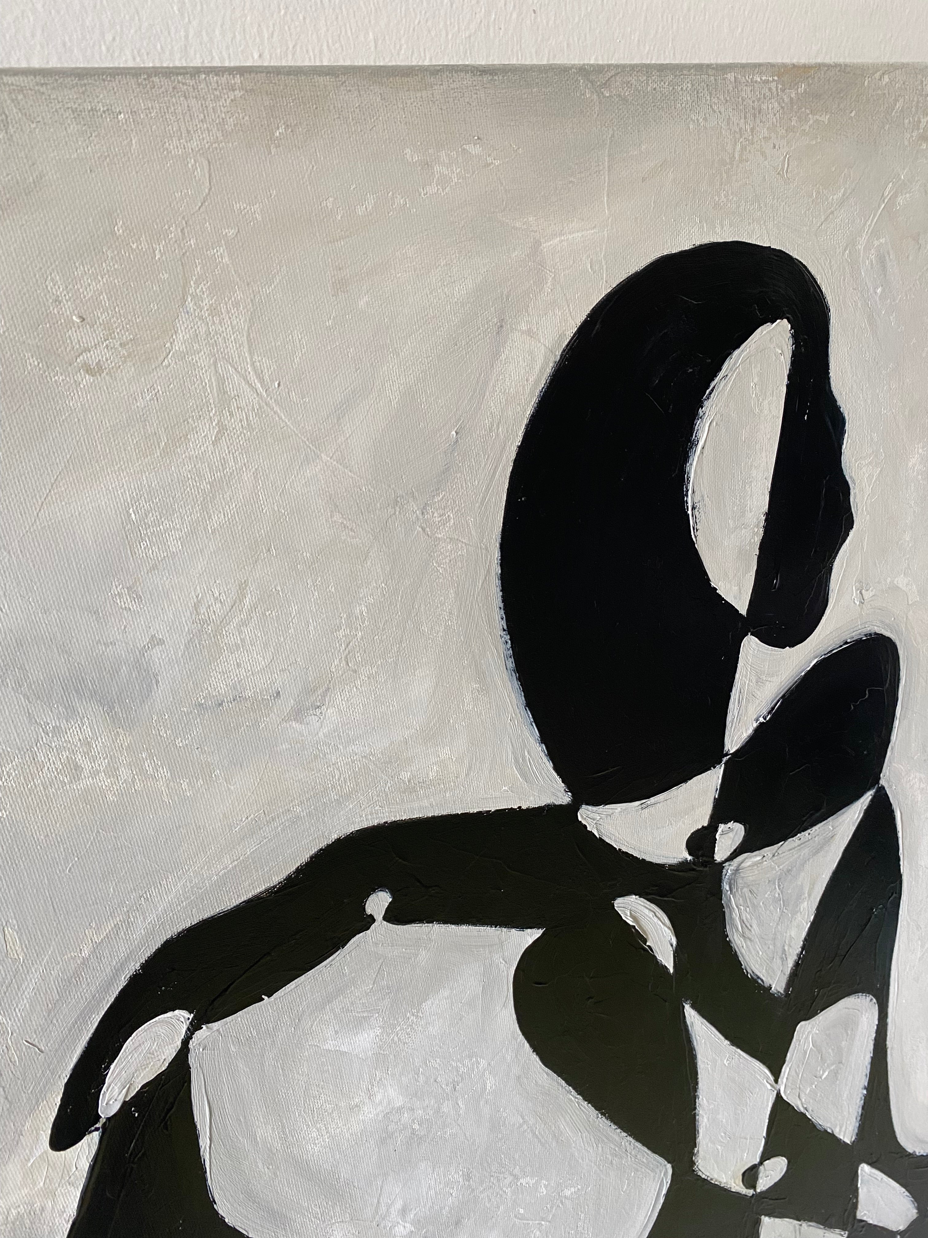 Tauchen Sie ein in den minimalistischen Charme von „Silhouette Synthesis“. Dieses abstrakte Gemälde besticht durch die einfache, aber tiefgründige Darstellung einer menschlichen Gestalt, die durch elegante schwarze und weiße Striche zu einer fast surrealen Figur verschmelzt. Dieses Kunstwerk eignet sich perfekt für moderne Innenräume und lädt den Betrachter dazu ein, seine subtilen Komplexitäten und emotionalen Konturen zu interpretieren. Ganz gleich, ob es ein Zuhause oder ein Büro schmückt, es verspricht, jede Umgebung mit seiner ruhigen und eleganten Atmosphäre zu bereichern. Ein wahres Juwel für Liebhaber abstrakter und minimalistischer Kunst.