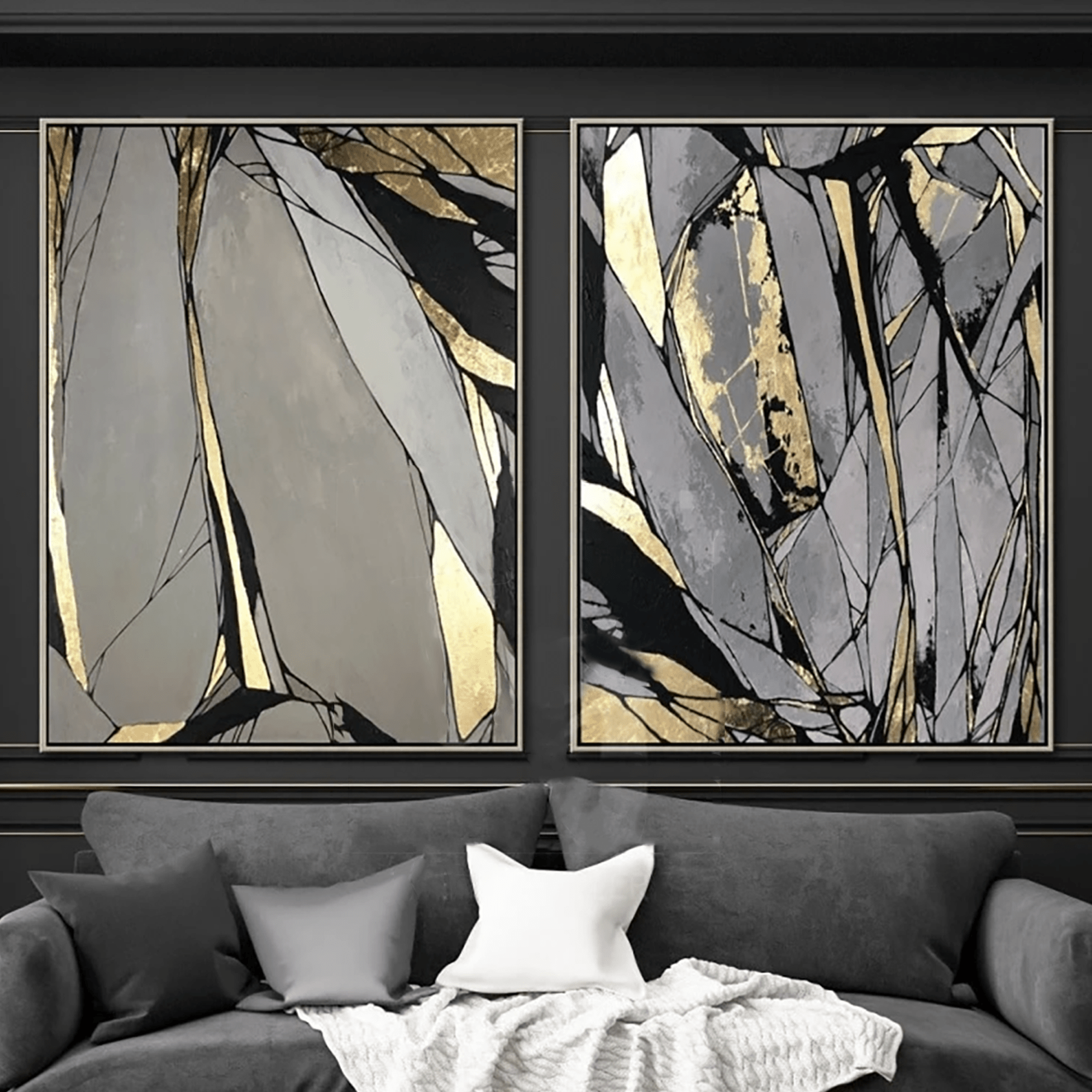 Abstrakte Malerei auf Leinwand Graue Malerei Blattgold Malerei Abstrakt 2 Stück | ROCK BLOOM - Trend Gallery Art | Original abstrakte Gemälde