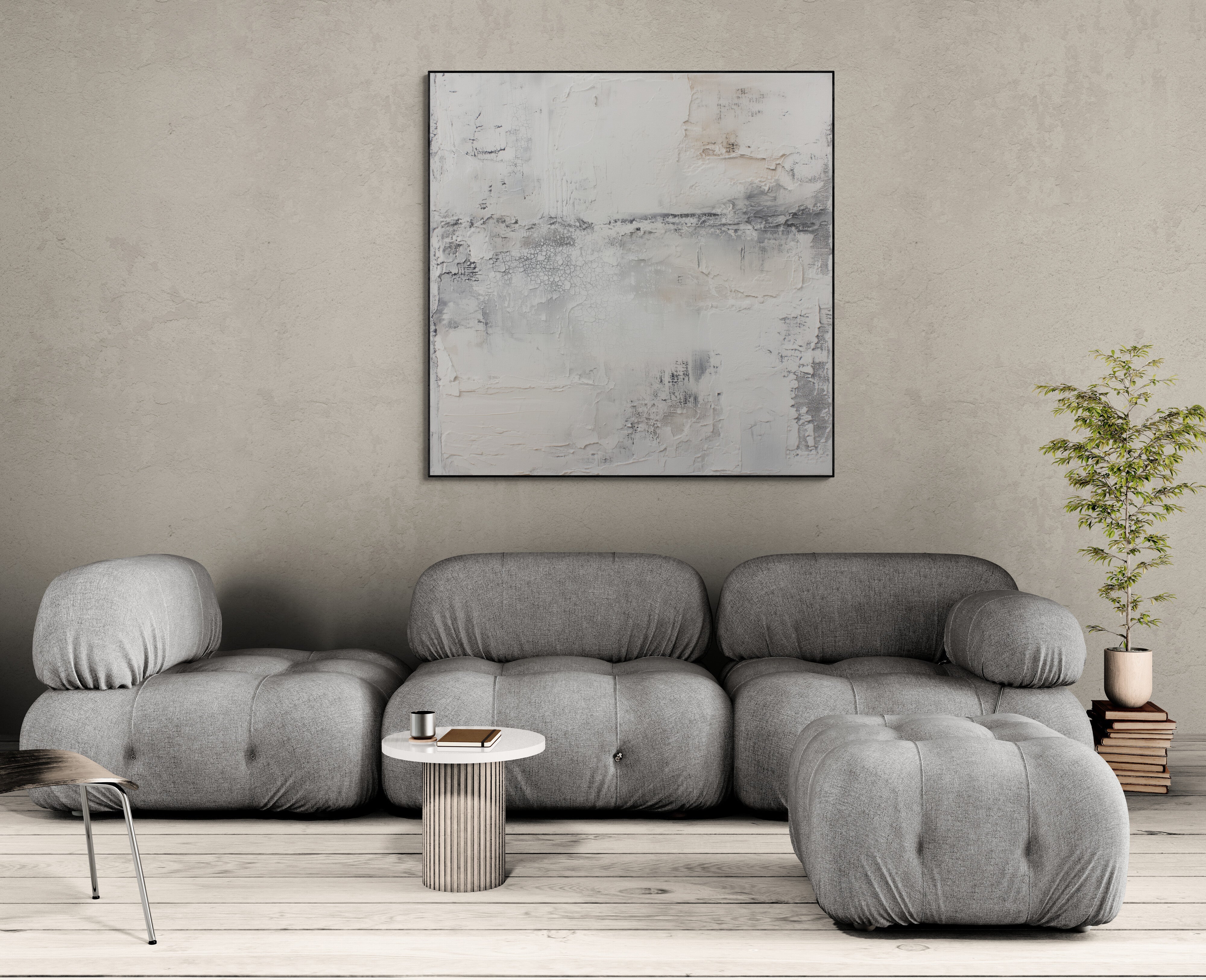 Sanfte neutrale abstrakte Kunst mit reichhaltiger Textur für moderne Räume. Verleihen Sie Ihrem Zuhause ruhige, minimalistische Eleganz — bestellen Sie diese einzigartige Leinwand noch heute.