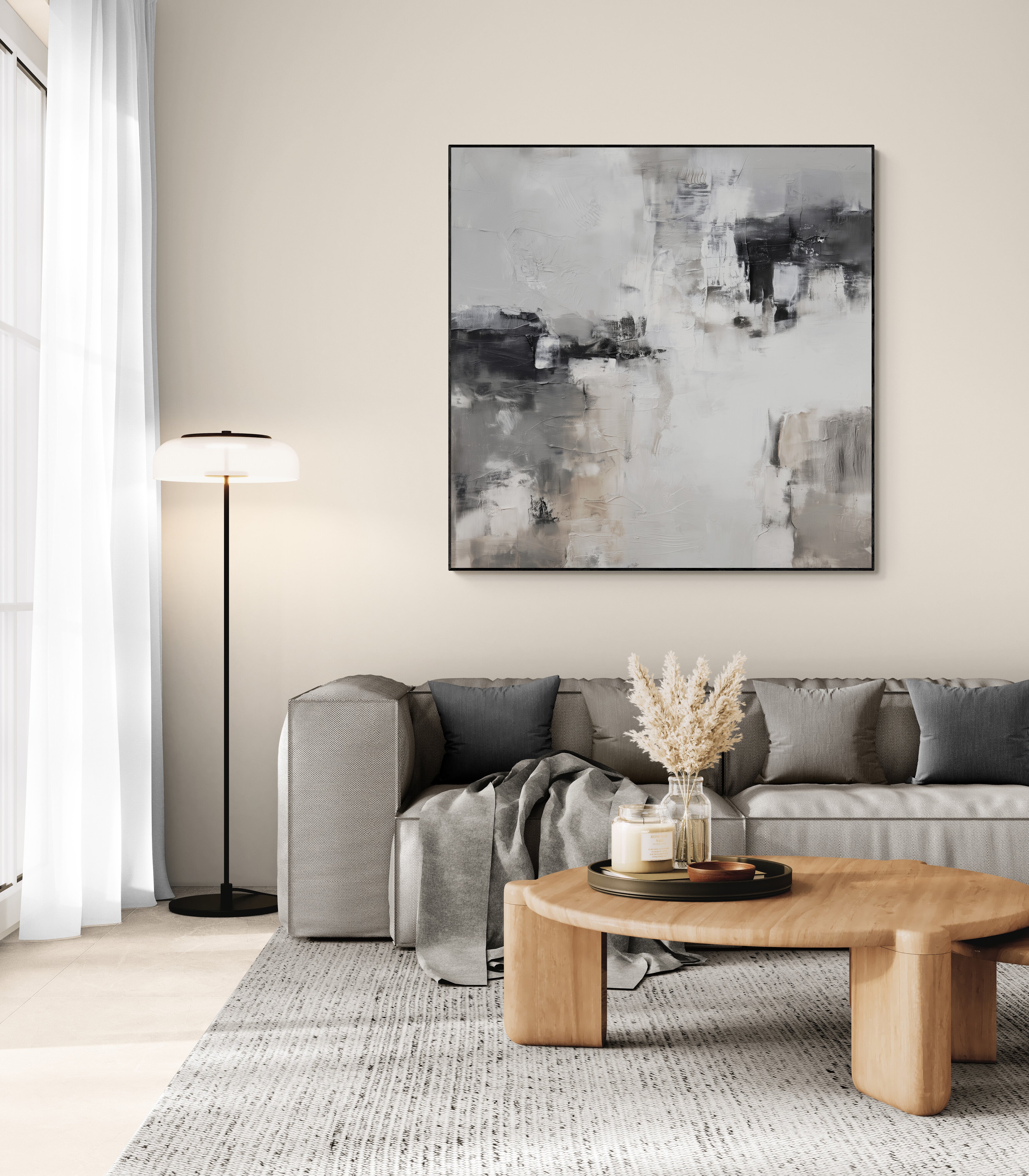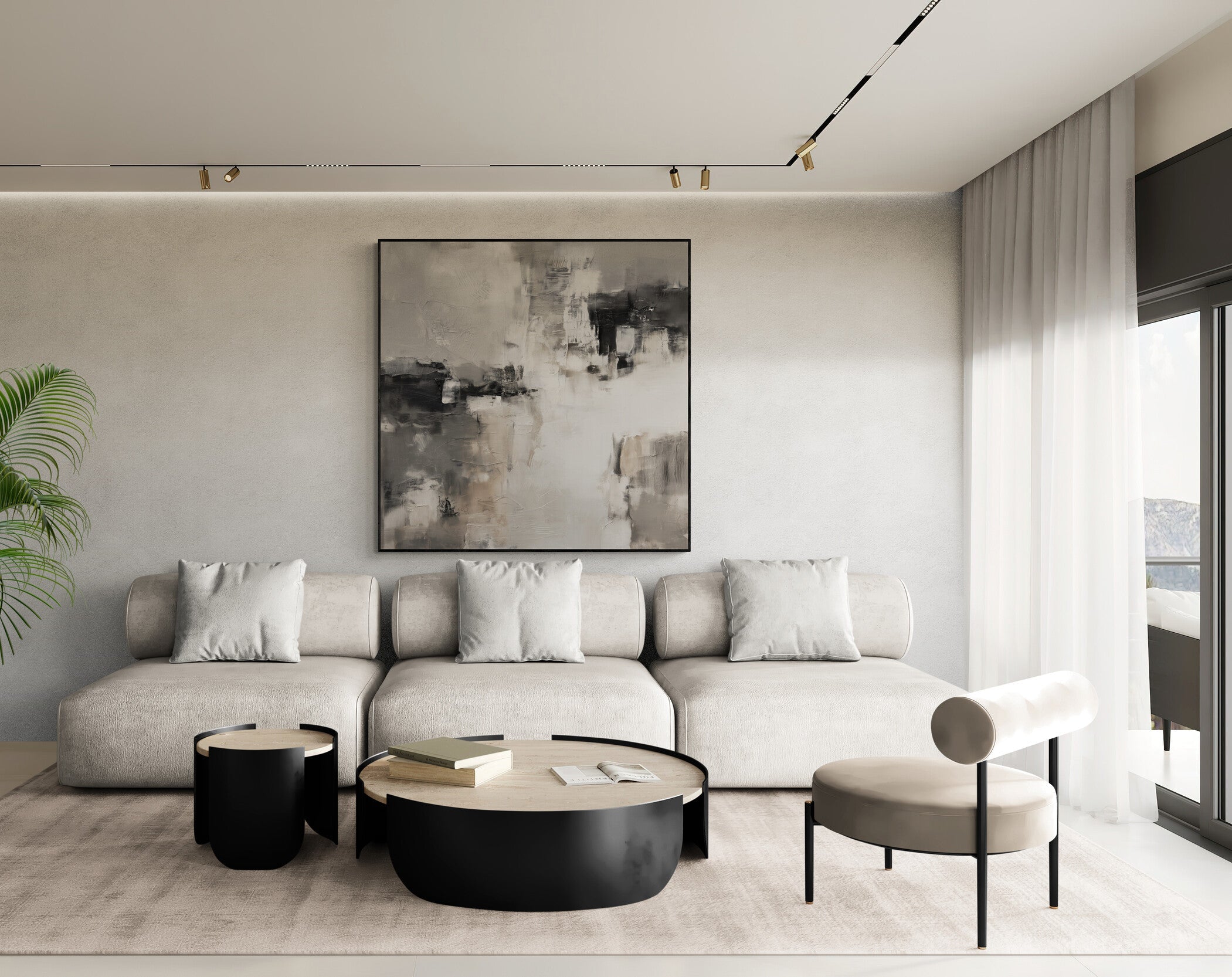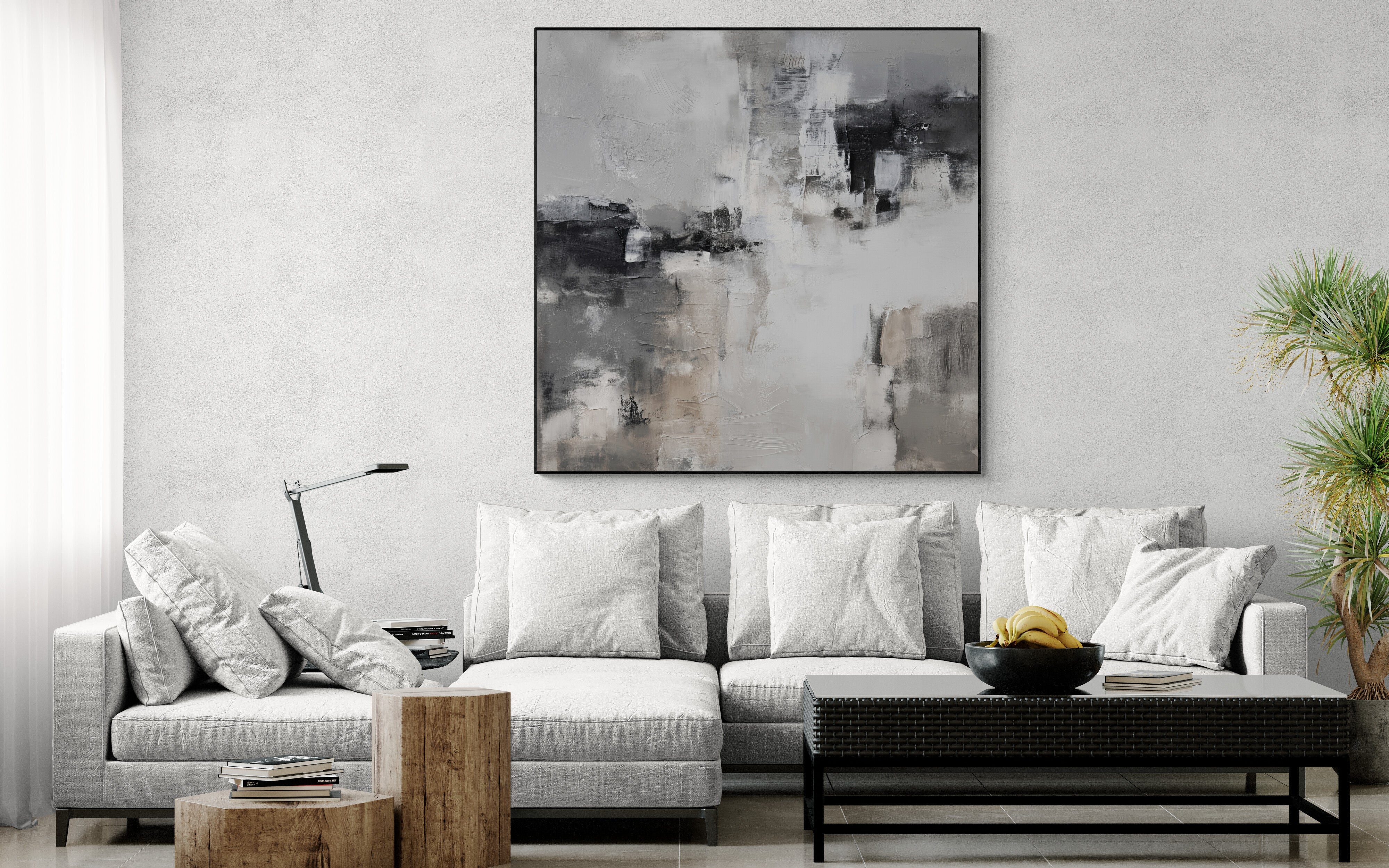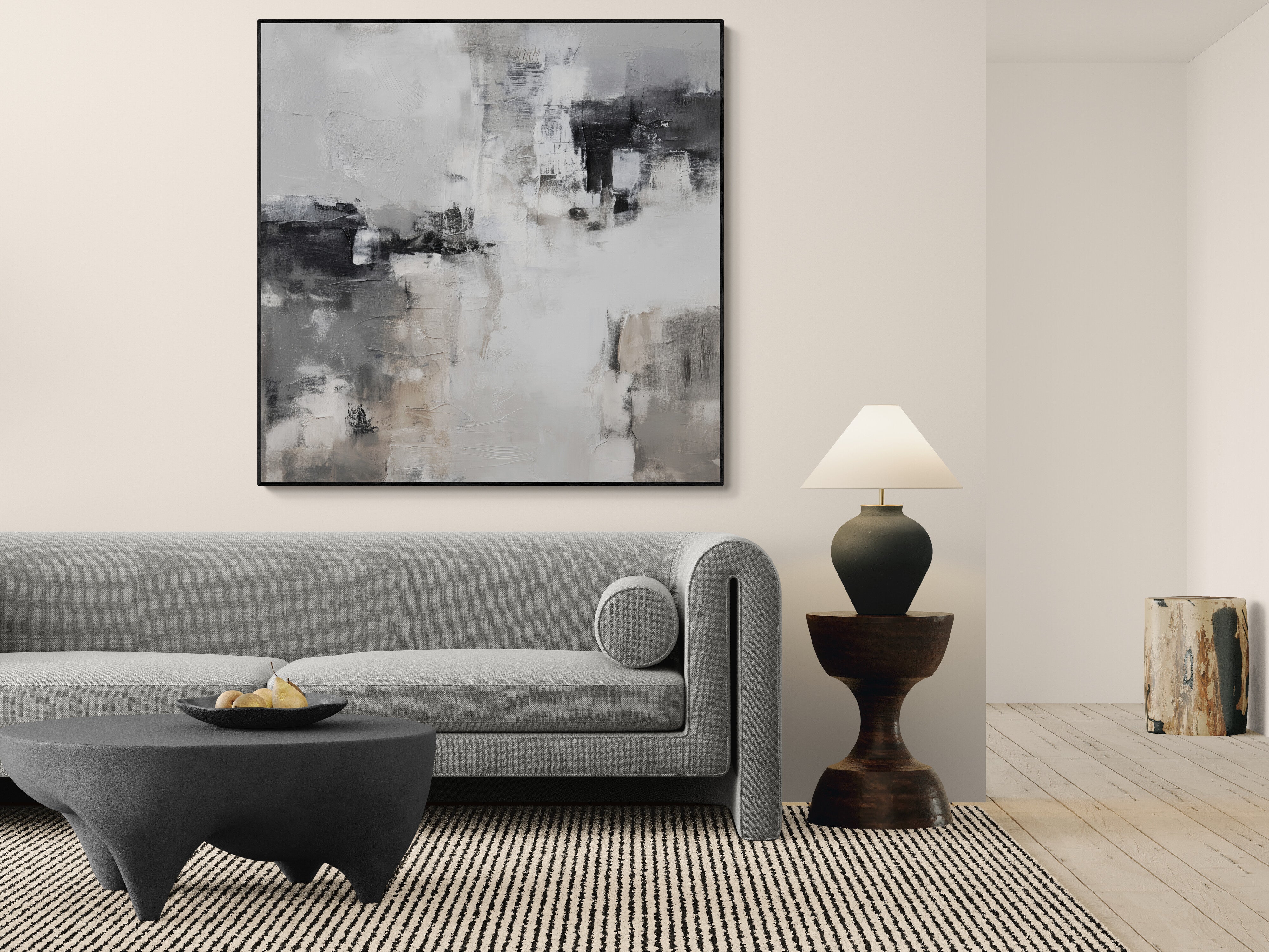 Strukturierte monochrome abstrakte Kunst für moderne Innenräume. Verleihen Sie Ihrem Raum minimalistische Eleganz — bestellen Sie diese einzigartige Leinwand noch heute.