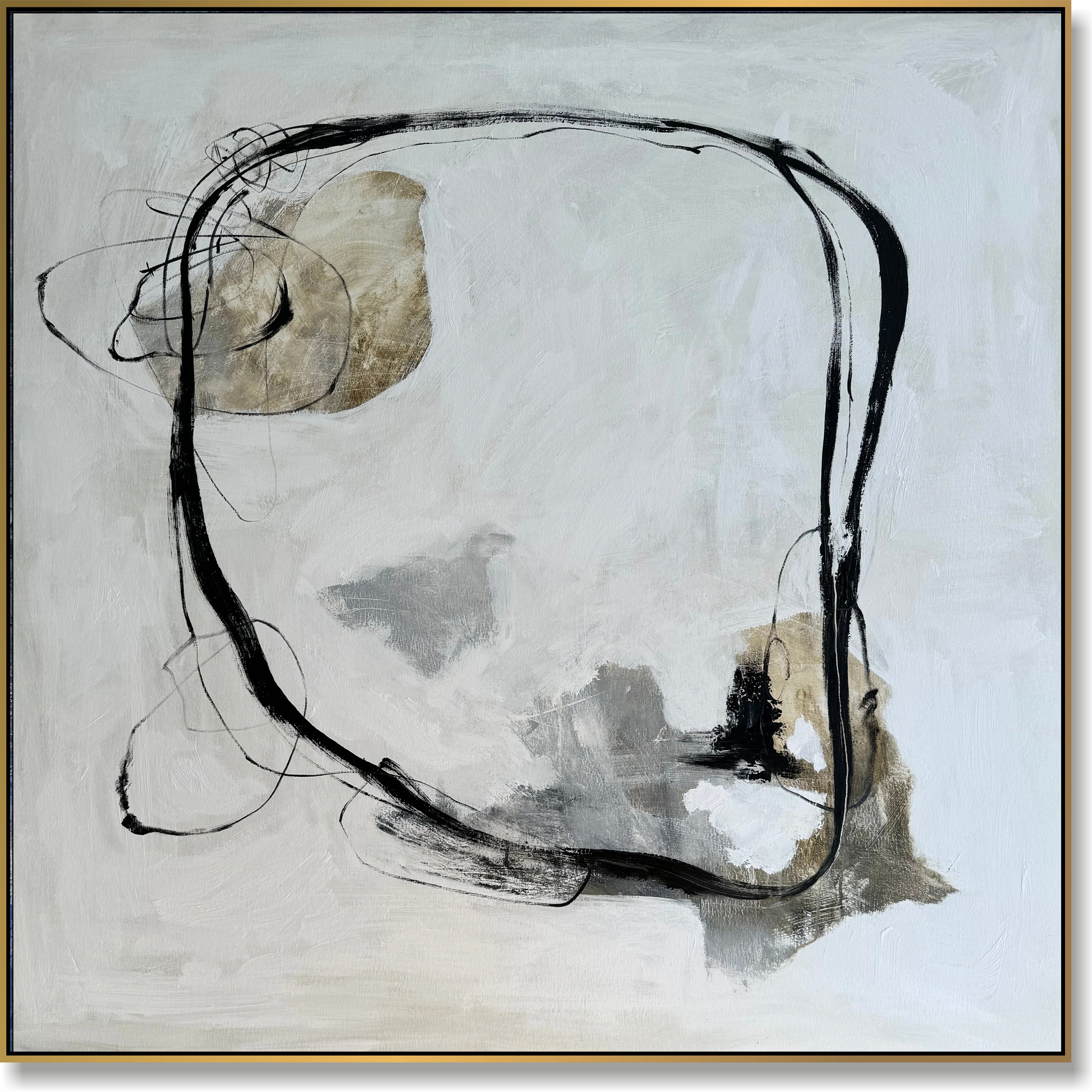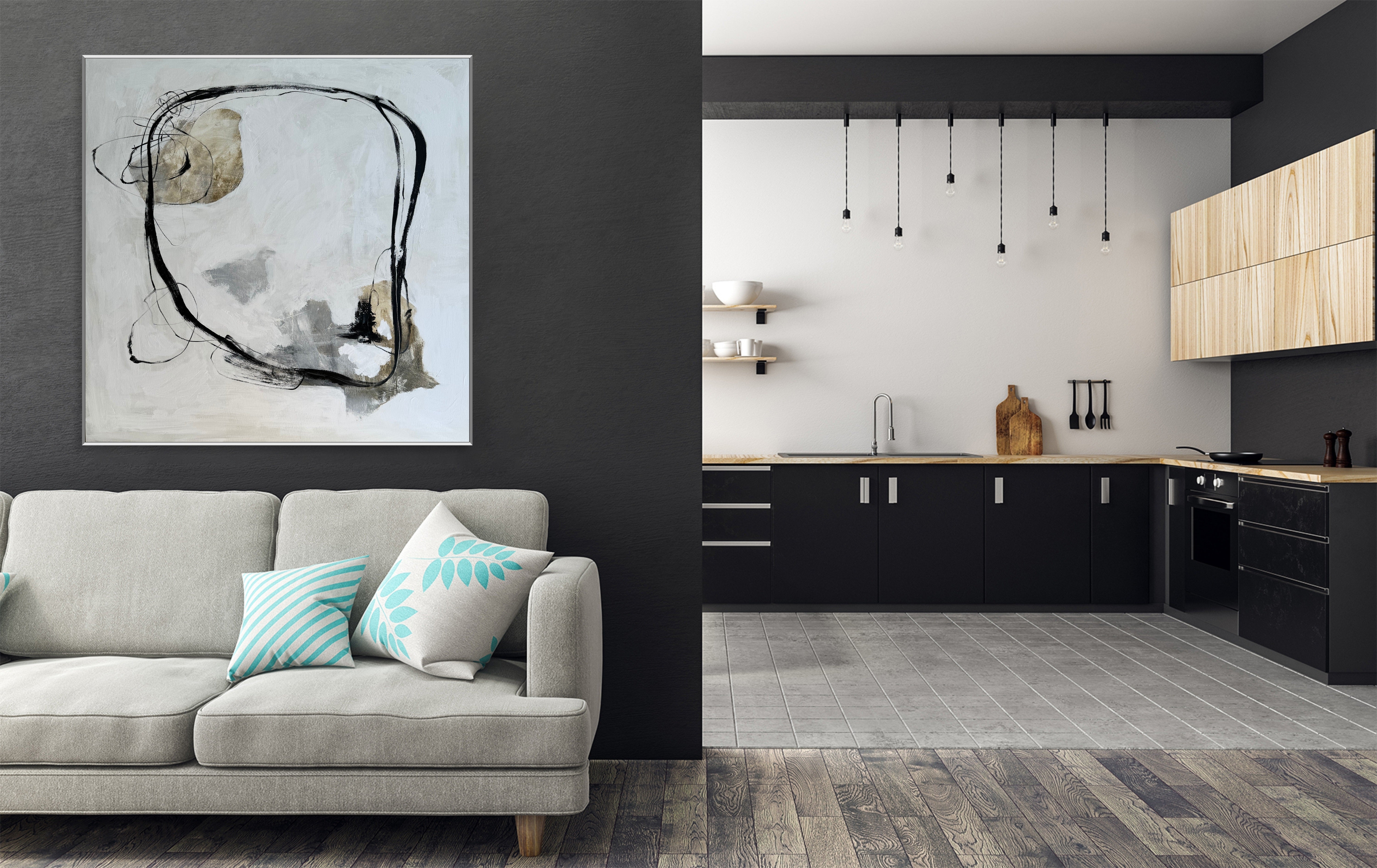 Entdecken Sie die raffinierte Schönheit von „Geometric Whispers“, einem abstrakten Schwarz-Weiß-Gemälde, das die Essenz des modernen Minimalismus verkörpert. Dieses Kunstwerk zeichnet sich durch zarte Linien und geometrische Formen vor einem monochromen Hintergrund mit einem Hauch von Beige aus und schafft so ein harmonisches und anspruchsvolles visuelles Erlebnis. Dieses Stück ist perfekt für Liebhaber zeitgenössischer und minimalistischer Kunst und verleiht jedem Raum einen Hauch moderner Eleganz. Genießen Sie die Schönheit abstrakter Konzepte und subtiler Ausdrucksformen mit diesem einzigartigen und stilvollen Kunstwerk.