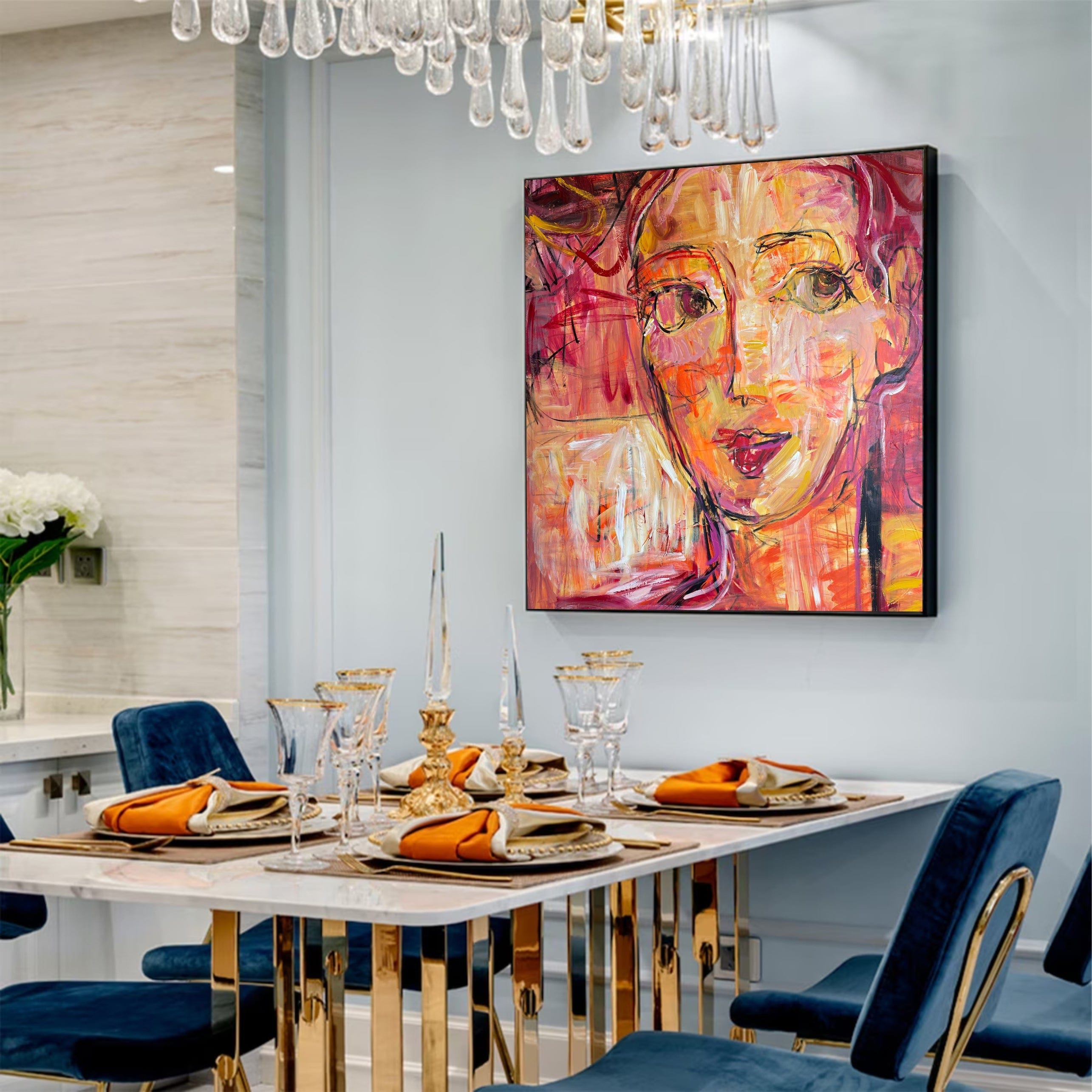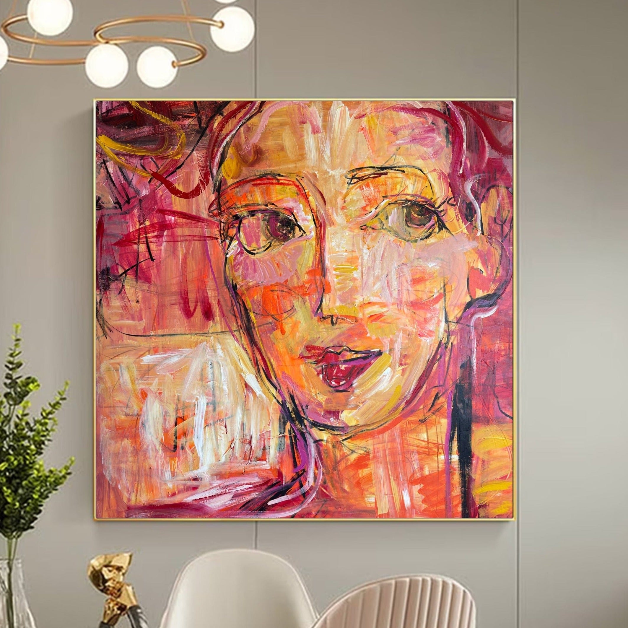 „Female Way“ ist ein lebendiges und ausdrucksstarkes Porträt, das die Essenz weiblicher Stärke und Anmut einfängt. Das Gemälde zeigt das Gesicht einer Frau, das mit kräftigen, dynamischen Pinselstrichen in einer warmen Palette aus Rot-, Orange- und Rosatönen wiedergegeben ist. Die abstrakten und vielschichtigen Texturen vermitteln ein Gefühl von Tiefe und Komplexität und spiegeln die Vielschichtigkeit der weiblichen Erfahrung wider. Ihre großen und nachdenklichen Augen ziehen den Betrachter an und laden zu einer tieferen Verbindung und einem tieferen Verständnis ein. Dieses Kunstwerk feiert die Schönheit, Widerstandskraft und den Geist der Frauen und macht „Female Way“ zu einer kraftvollen und inspirierenden Ergänzung jeder Kunstsammlung.