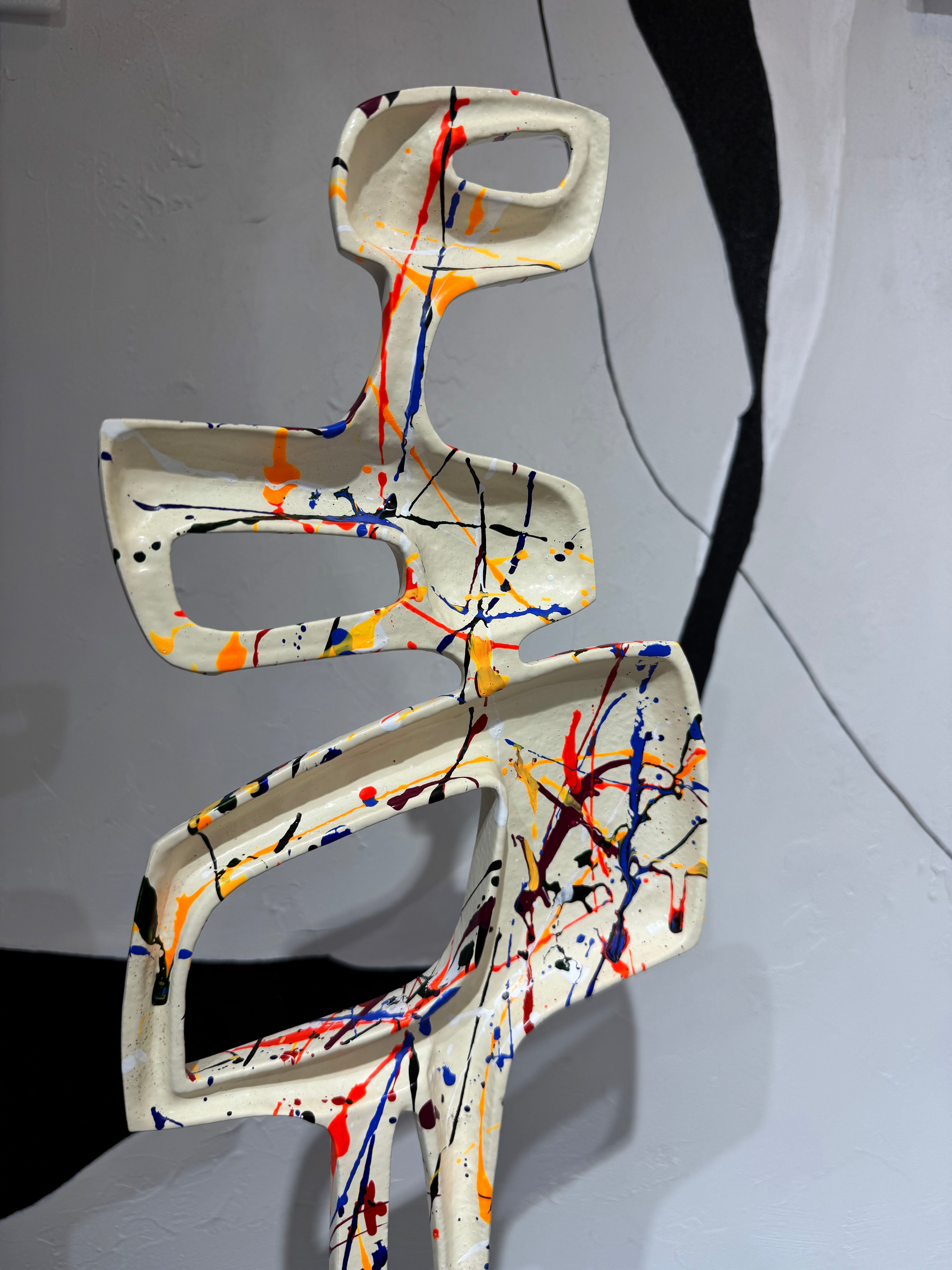 Abstrakte figürliche Skulptur mit dynamischer Form und bunten Spritzern – kühn, energiegeladen und modern. Setzen Sie einen auffälligen Akzent, jetzt bestellen!