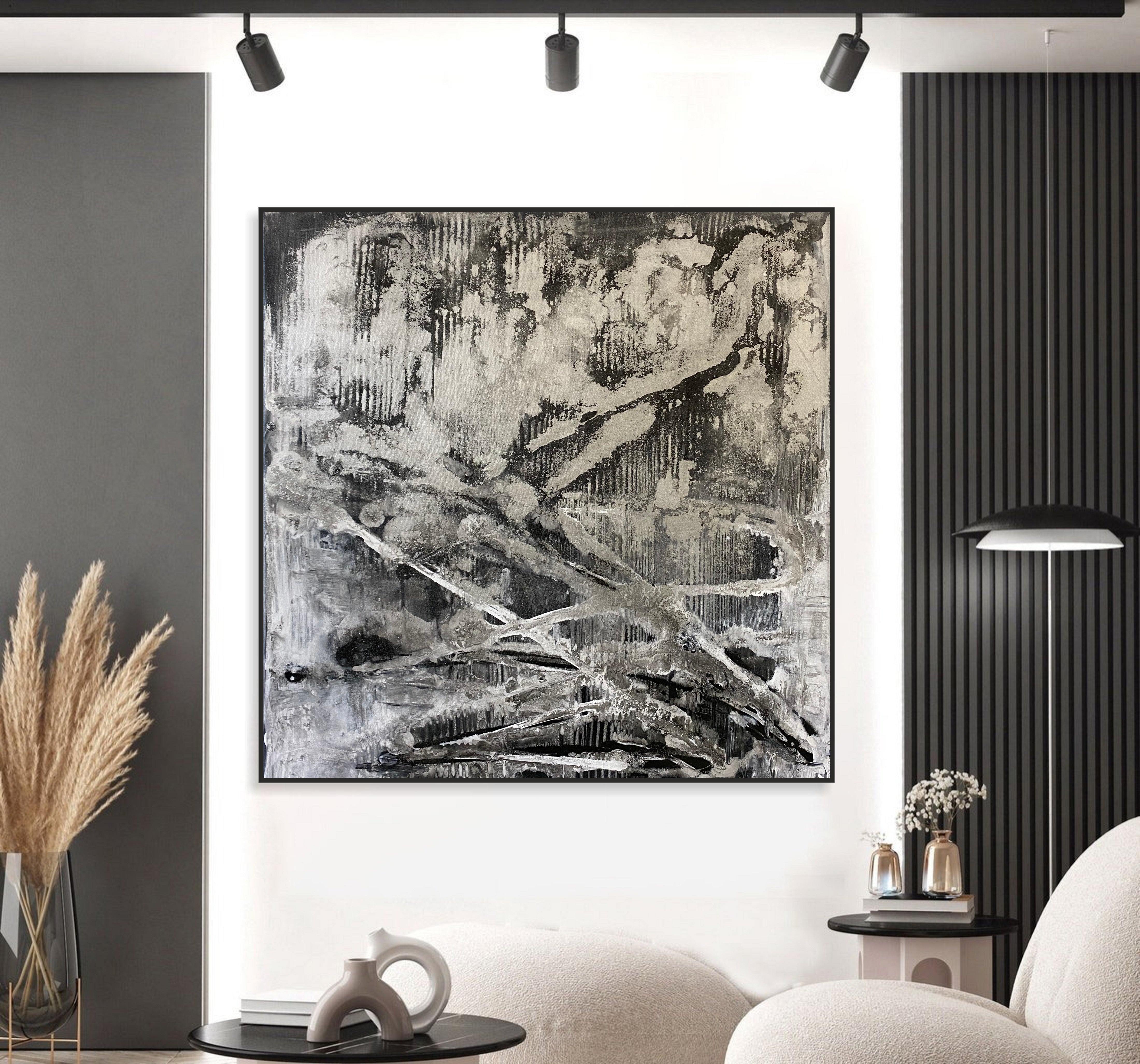 „CHAOTIC ENERGY“ ist eine faszinierende abstrakte Komposition auf Leinwand mit Schichten wirbelnder Grautöne, die ein Gefühl dynamischer Bewegung und Intensität hervorrufen. Mit seiner modernen strukturierten Oberfläche und der monochromen Farbpalette strahlt dieses minimalistische Kunstwerk rohe Energie und Komplexität aus. Als markante Ergänzung für jeden Raum bietet es eine einzigartige Interpretation von Chaos und Ordnung und lädt den Betrachter ein, die Tiefen seiner faszinierenden Abstraktion zu erkunden.