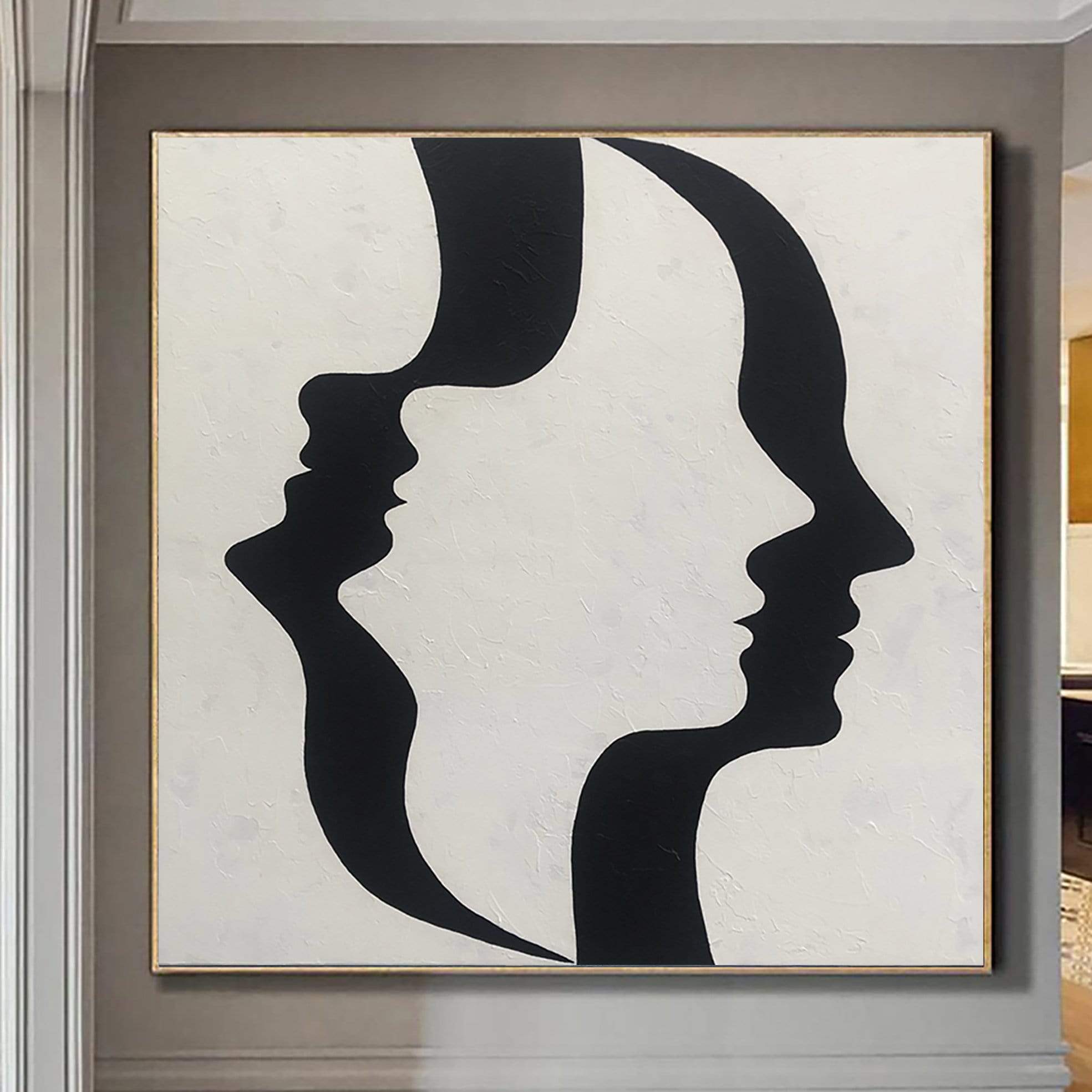 Schwarz-Weiß-Mode-Kunst extrem einzigartige Malerei auf Leinwand Original Schwarz-Weiß-Kunst abstrakte Gesichtsbemalung | OPTICAL ILLUSION - Trend Gallery Art | Original abstrakte Gemälde