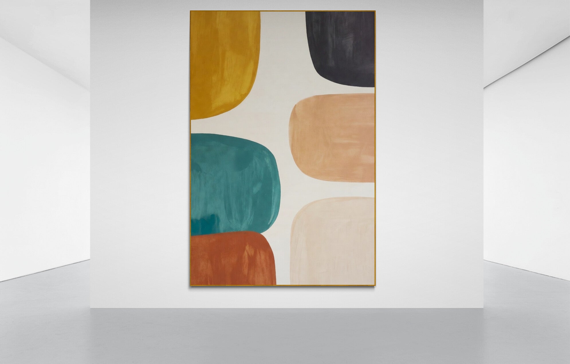 Leuchtendes, geometrisches abstraktes Gemälde mit kräftigen, farbenfrohen Formen, perfekt für moderne Interieurs. Ein lebendiger Blickfang für jeden Raum. Jetzt kaufen und Ihr Zuhause neu gestalten!
