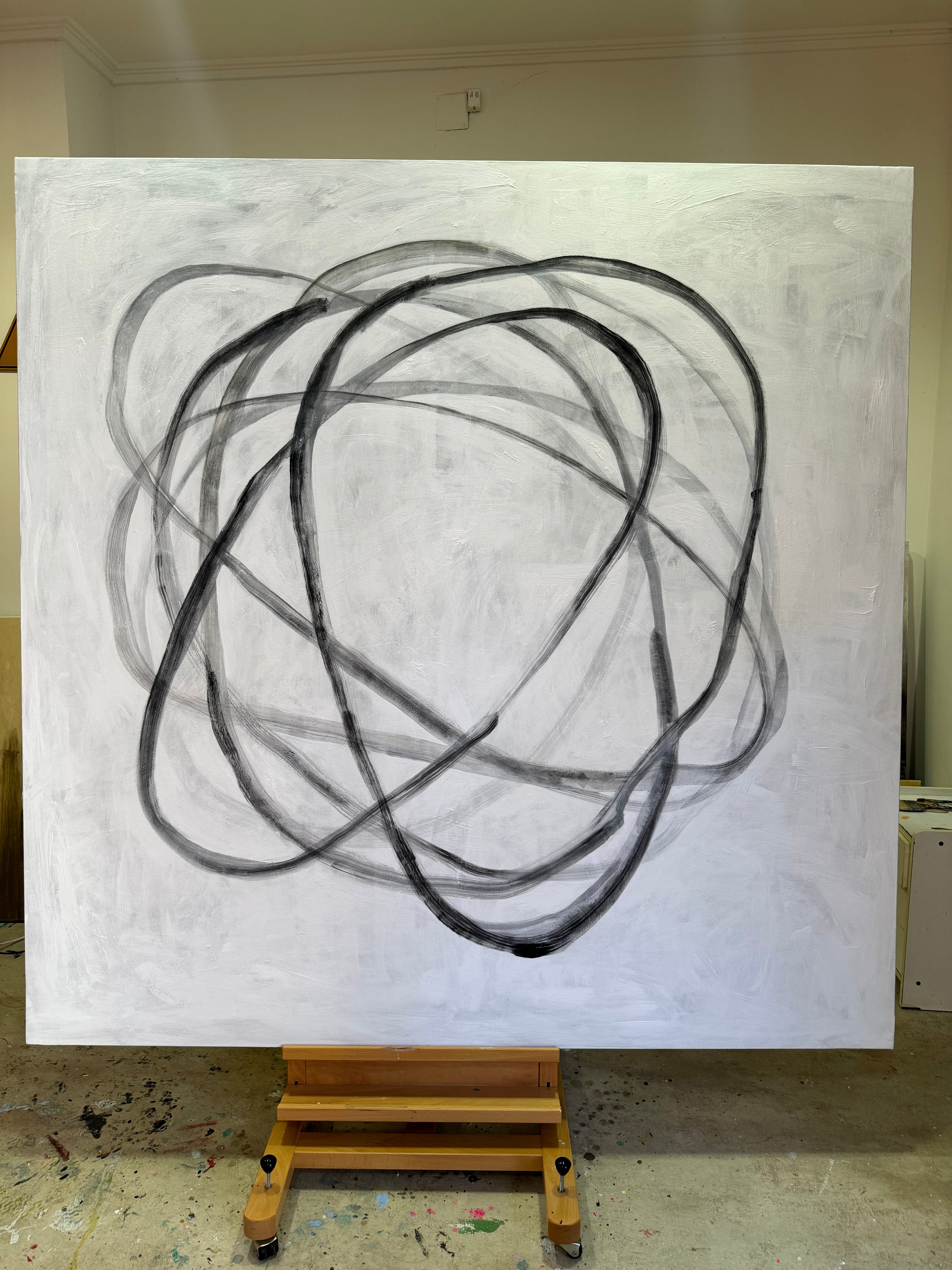 Entdecken Sie die faszinierende Einfachheit von „Minimalist „Swirl“, ein abstraktes Schwarz-Weiß-Gemälde, das die Essenz des modernen Minimalismus verkörpert. Dieses Kunstwerk zeichnet sich durch dynamische Linien und geometrische Formen vor einem monochromen Hintergrund aus, wodurch ein harmonisches und anspruchsvolles visuelles Erlebnis entsteht. Dieses Stück ist perfekt für Liebhaber zeitgenössischer und minimalistischer Kunst und verleiht jedem Raum einen Hauch moderner Eleganz. Erleben Sie die Schönheit abstrakter Konzepte und linearer Ausdrucksformen mit diesem einzigartigen und stilvollen Kunstwerk.