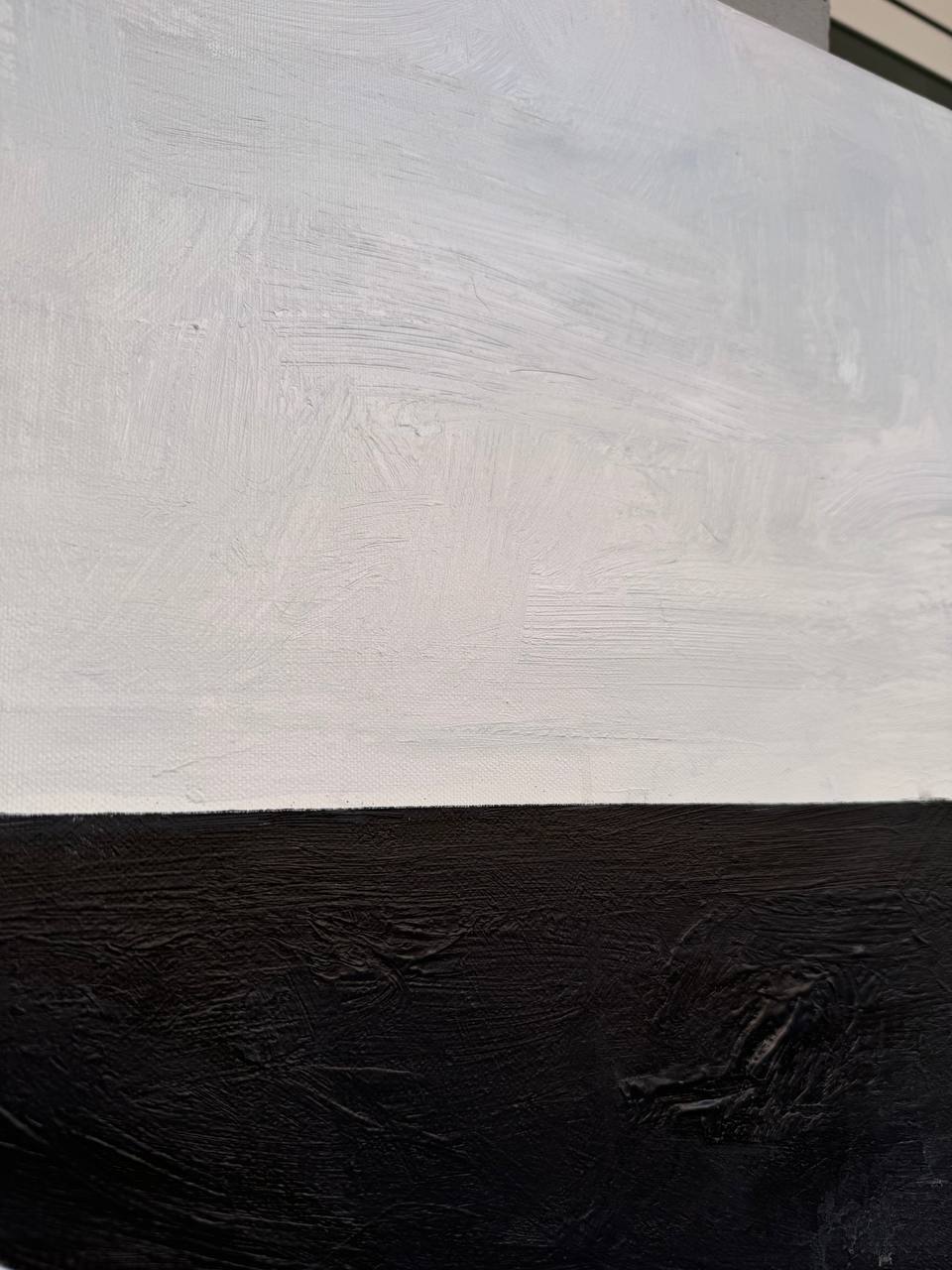 MONOCHROME FLOW ist ein beeindruckendes abstraktes Gemälde, das die Essenz des Minimalismus mit seinem mutigen Schwarz-Weiß-Design einfängt. Die fließenden Linien erzeugen ein dynamisches Gefühl von Bewegung und vermitteln sowohl Ruhe als auch Energie. Dieses Stück ist perfekt für moderne und zeitgenössische Innenräume und verleiht jedem Raum einen Hauch von Raffinesse, der verschiedene Einrichtungsstile ergänzt. Die Schlichtheit der Schwarz-Weiß-Palette macht es zu einer vielseitigen Ergänzung für jedes Zimmer, egal ob Sie einen Blickfang in Ihrem Wohnbereich schaffen oder Ihrem Büro einen Hauch von Eleganz verleihen möchten. Mit viel Liebe zum Detail handgefertigt, verkörpert dieses Kunstwerk die Schönheit des abstrakten Ausdrucks durch sein harmonisches Gleichgewicht von Licht und Dunkelheit.