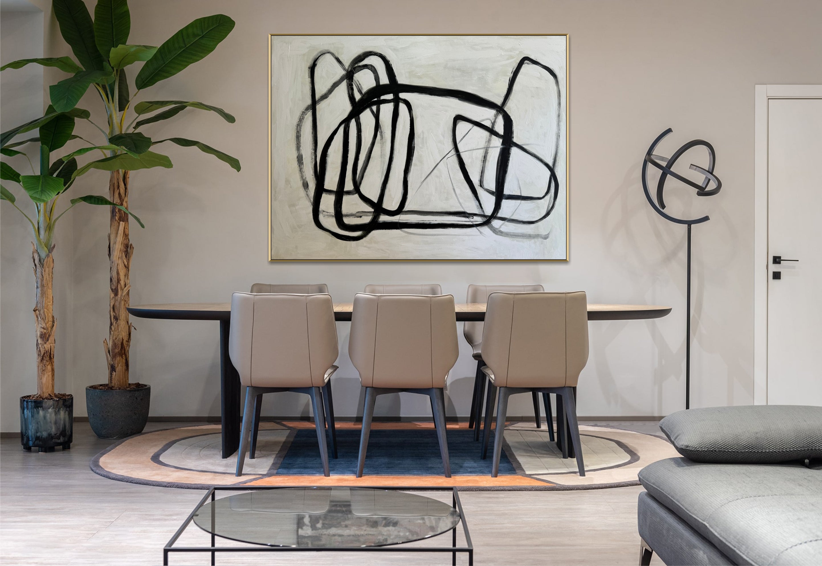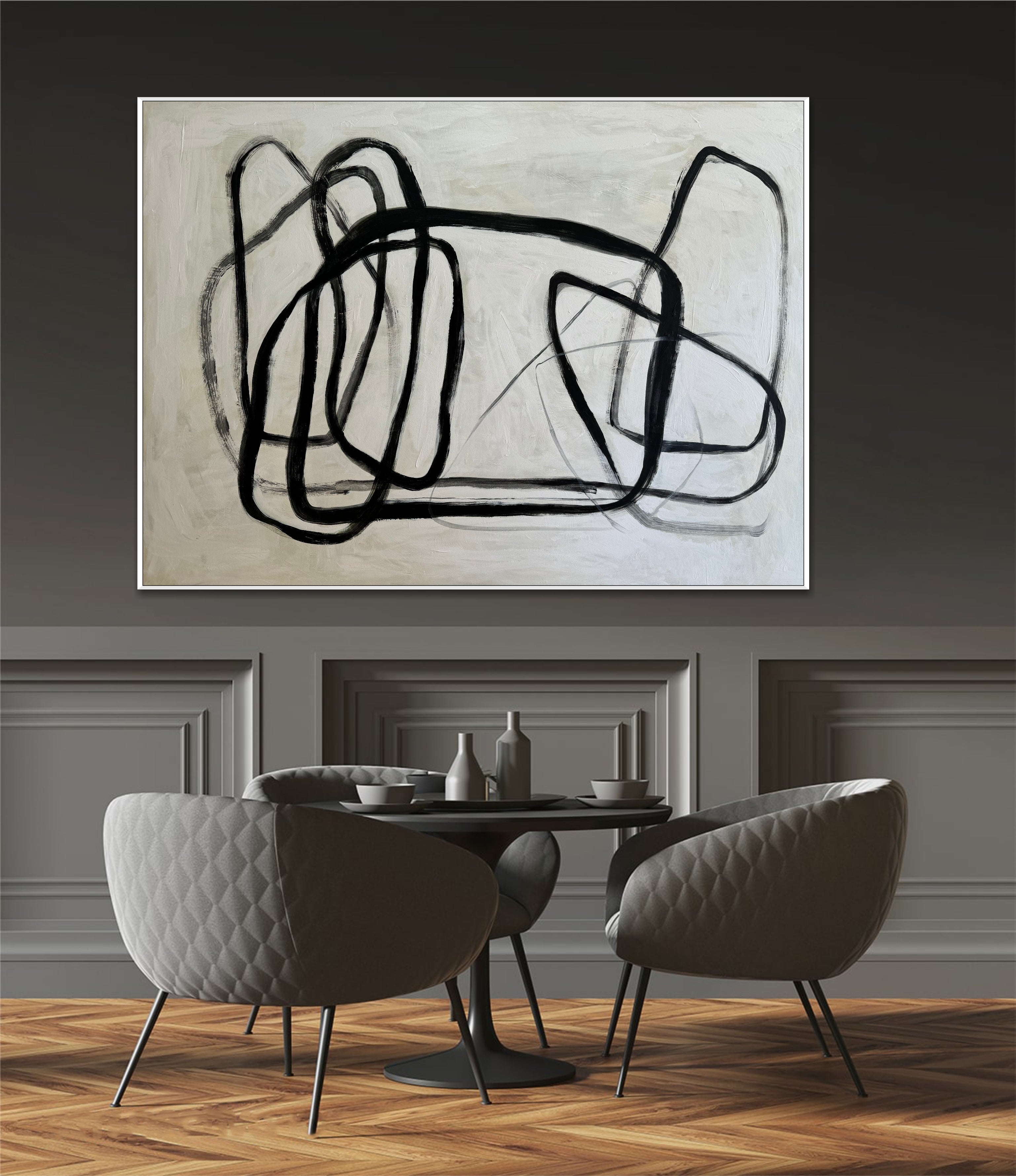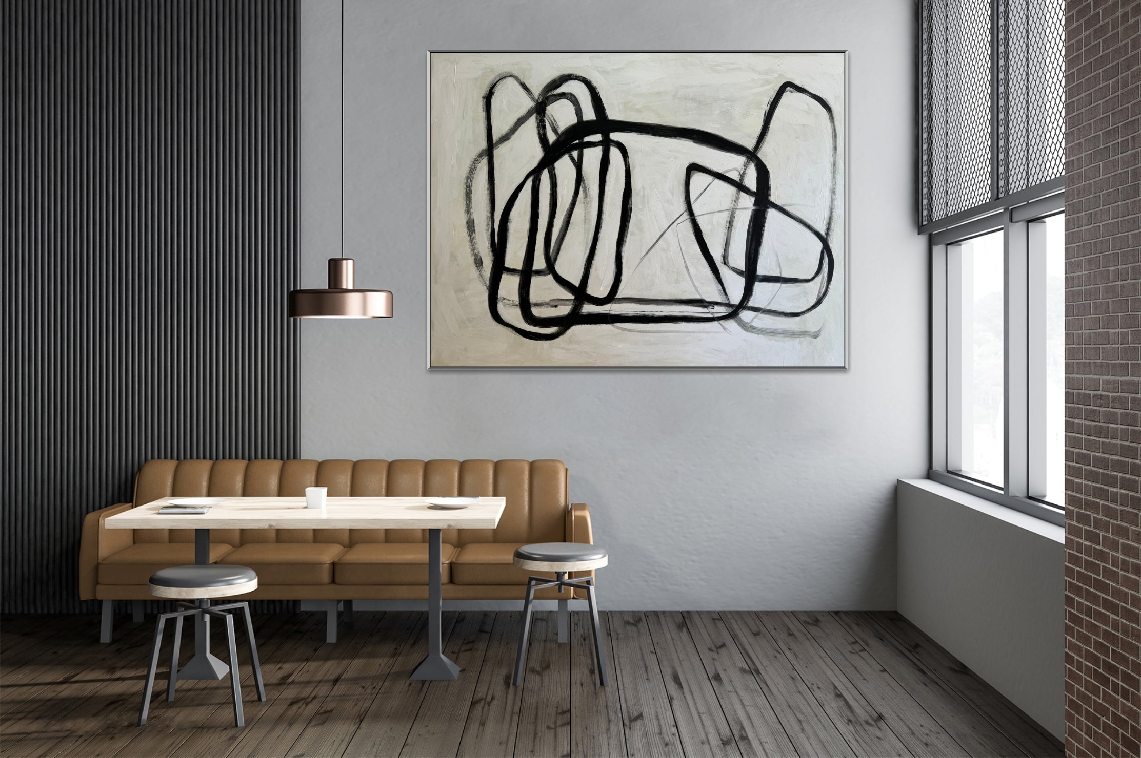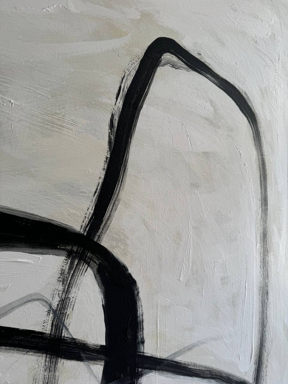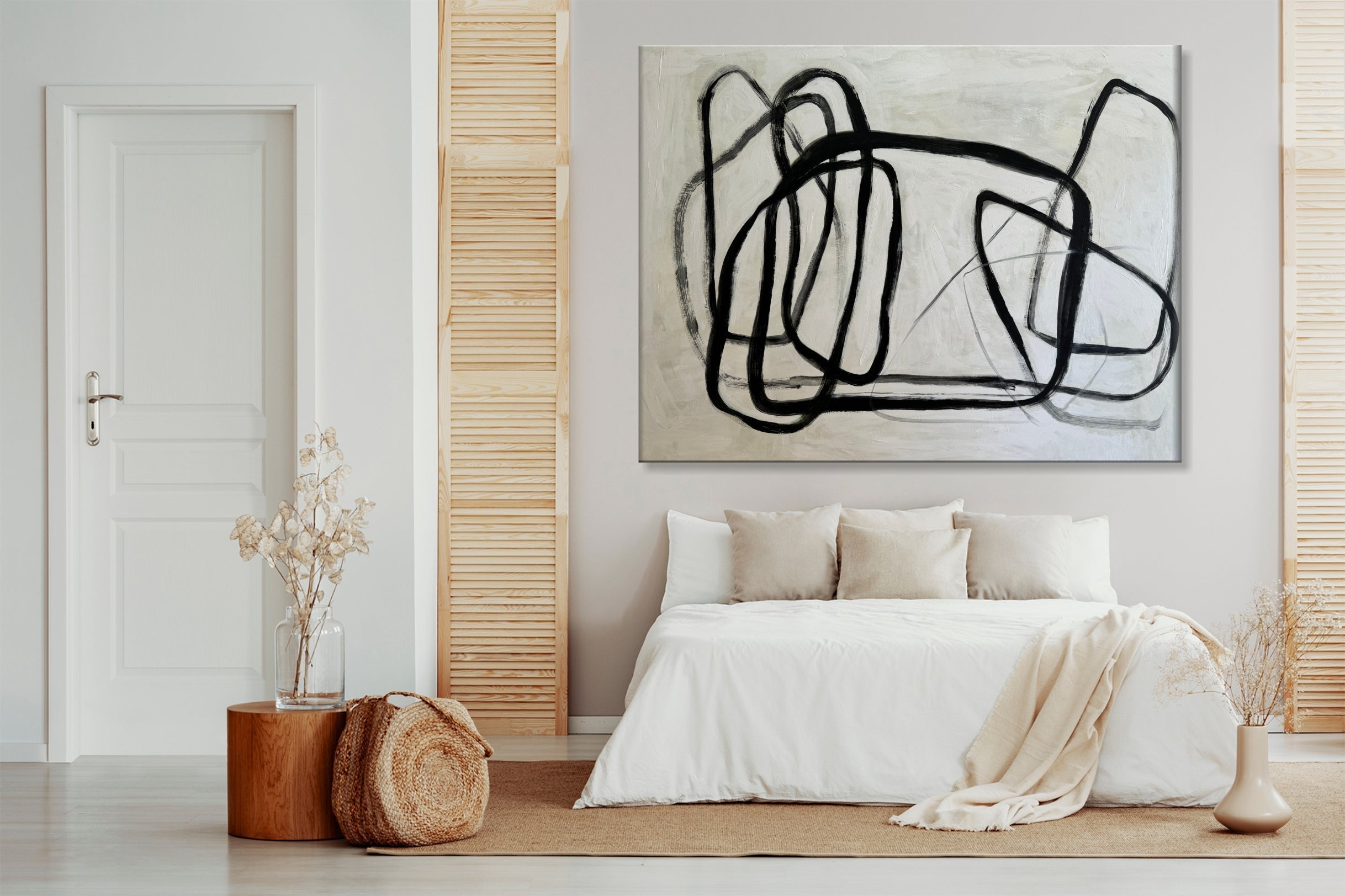 Entdecken Sie die Eleganz der Einfachheit mit „Linear Motion“, einem abstrakten Schwarz-Weiß-Gemälde, das die Essenz des modernen Minimalismus verkörpert. Dieses Kunstwerk zeichnet sich durch dynamische Linien und geometrische Formen aus, die ein harmonisches und anspruchsvolles visuelles Erlebnis schaffen. Dieses Stück ist perfekt für Liebhaber zeitgenössischer und monochromer Kunst und verleiht jedem Raum einen Hauch moderner Eleganz. Umarmen Sie die Schönheit abstrakter Konzepte und minimalistischen Ausdrucks mit diesem einzigartigen und stilvollen Kunstwerk.
