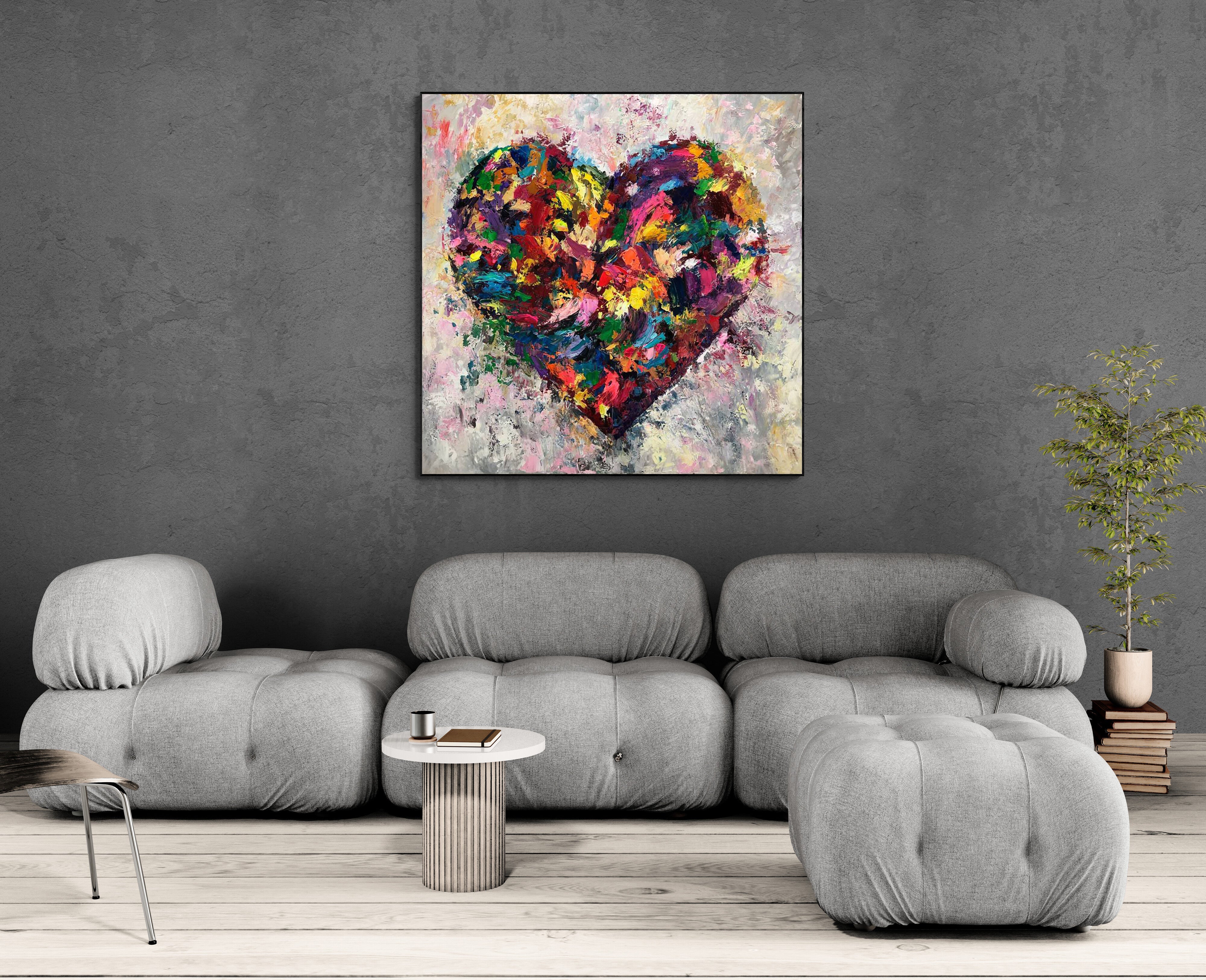 Dieses handgemalte Herz ist eine wahre Explosion aus Farben und Emotionen und verkörpert die Schönheit und Intensität der Liebe. Reichhaltige Texturen und ausdrucksstarke Pinselstriche formen ein ausdrucksstarkes abstraktes Herz, das Leidenschaft, Freude und Wärme ausstrahlt. Dieses Gemälde eignet sich perfekt als romantisches Geschenk oder als Blickfang in modernen Interieurs und verleiht jedem Raum einen Hauch von Leben und eine herzliche Botschaft.