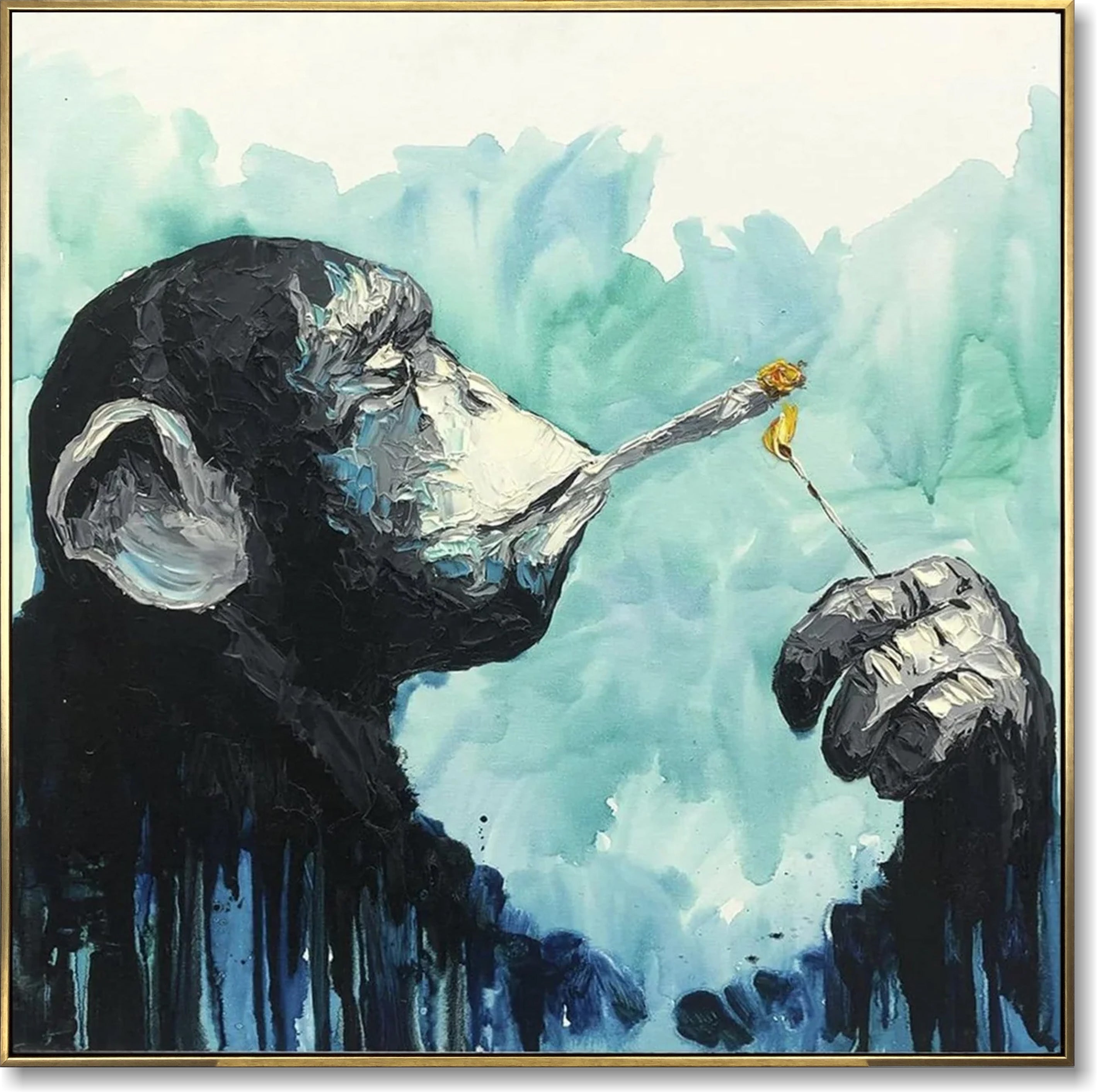 Pop-Art-Gemälde mit Öl wirken frisch und modern, insbesondere wenn sie mit großen Pinselstrichen ausgeführt sind. Solche Gemälde werden Impasto-Gemälde genannt und die Kombination dieser klassischen Technik mit populärer Kunst schafft etwas noch nie Dagewesenes und Einzigartiges. Tiergemälde mit einem erkennbaren Motiv sind eine gute Wahl für alle, die bekannte Kunst und berühmte Persönlichkeiten mögen.