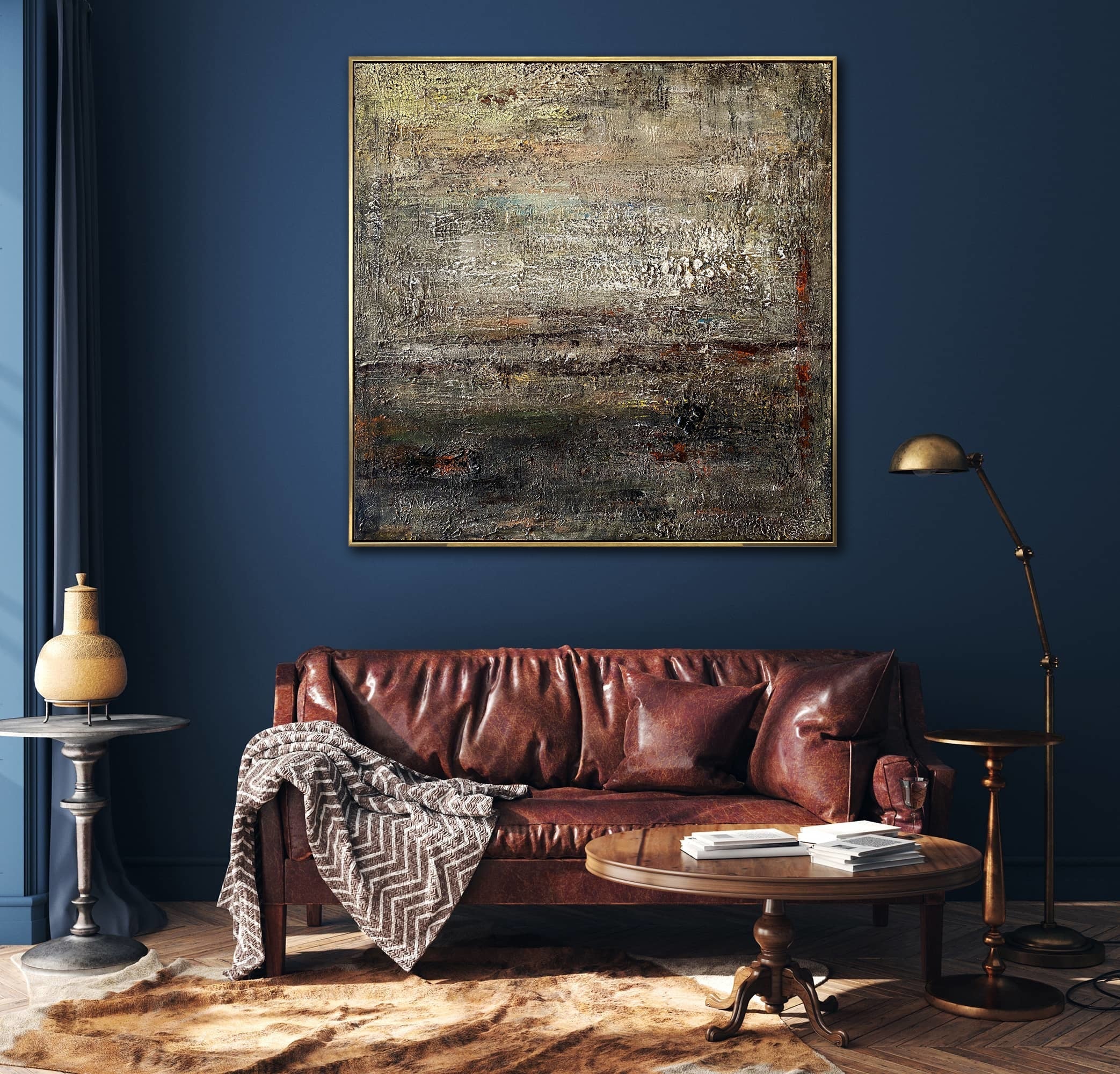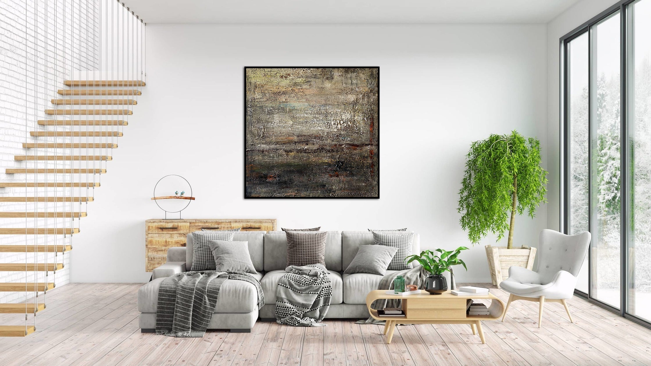 Sattes Impasto und subtile Horizontlinien formen eine ruhige, zeitlose Landschaft in neutralen Erdtönen. Schichten aus warmem Grau, Taupe und Anthrazit mit einem Hauch von Rost und Moosgrün erzeugen eine raffinierte Wabi-Sabi-Stimmung, die Wohnzimmer, Schlafzimmer und Büros erdet. Handgemalt auf Leinwand, in Sondergrößen mit optionalem Schattenfugenrahmen erhältlich. Fertig zum Aufhängen, wenn gespannt oder gerollt geliefert. Perfekt über Sofa, Bett oder Kaminsims – Farbanpassungen sind willkommen. Verleihen Sie Ihrem Raum eine galerieartige Textur und ruhige Tiefe.