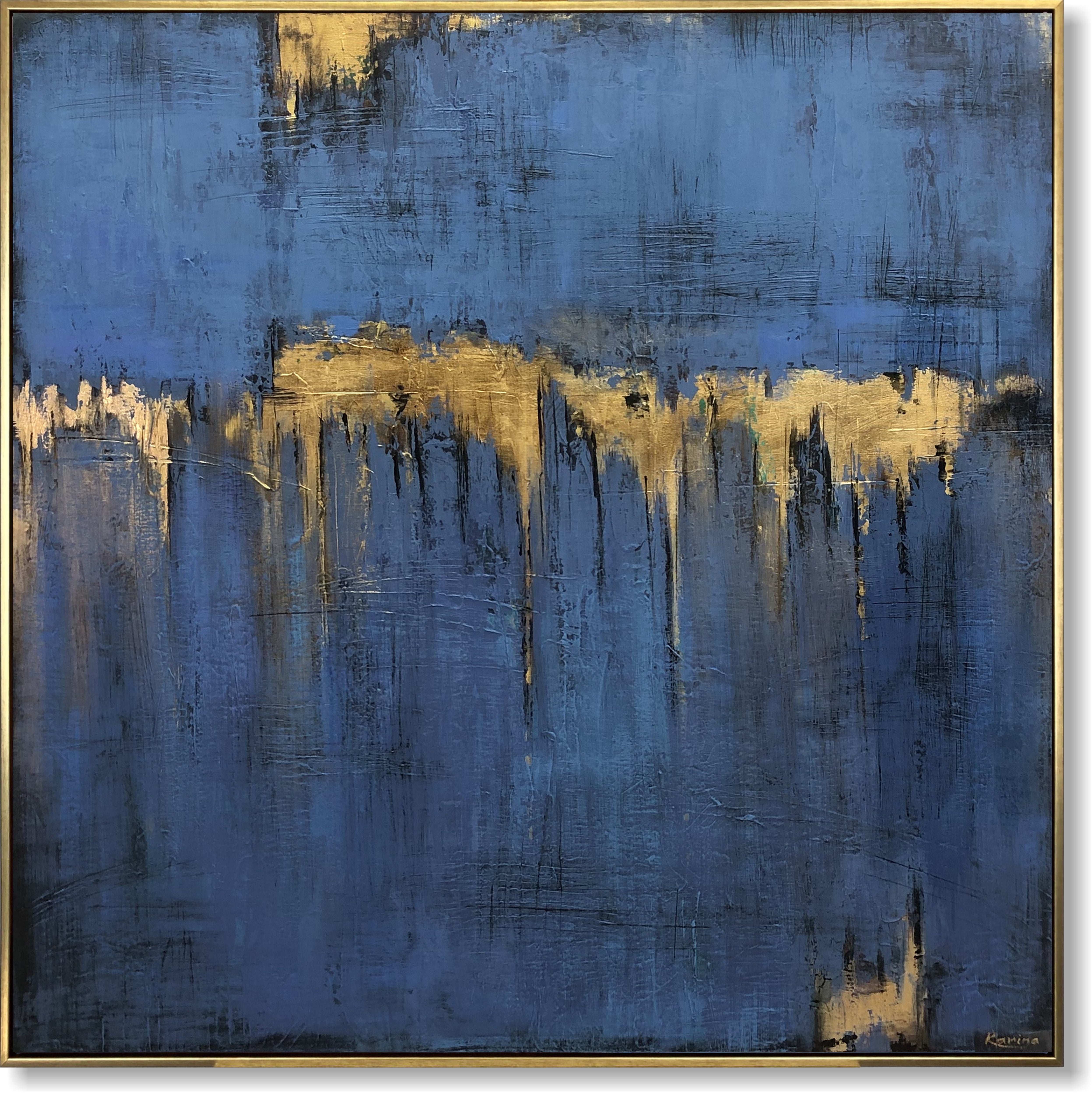 Verleihen Sie Ihrem Raum Tiefe und Raffinesse mit diesem luxuriösen abstrakten Gemälde in Blau und Gold. Mit strukturierten Pinselstrichen und metallischen Goldakzenten auf satten Marinetönen eignet sich dieses zeitgenössische Kunstwerk perfekt für moderne, minimalistische oder gehobene Interieurs. Ob als Mittelpunkt oder Akzent – seine raffinierte Eleganz wertet jeden Raum auf. Ein atemberaubendes Stück für Sammler von ausdrucksstarkem und zeitlosem Dekor. Handgemalt und bereit zu beeindrucken.
