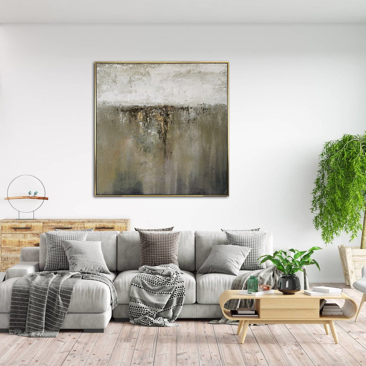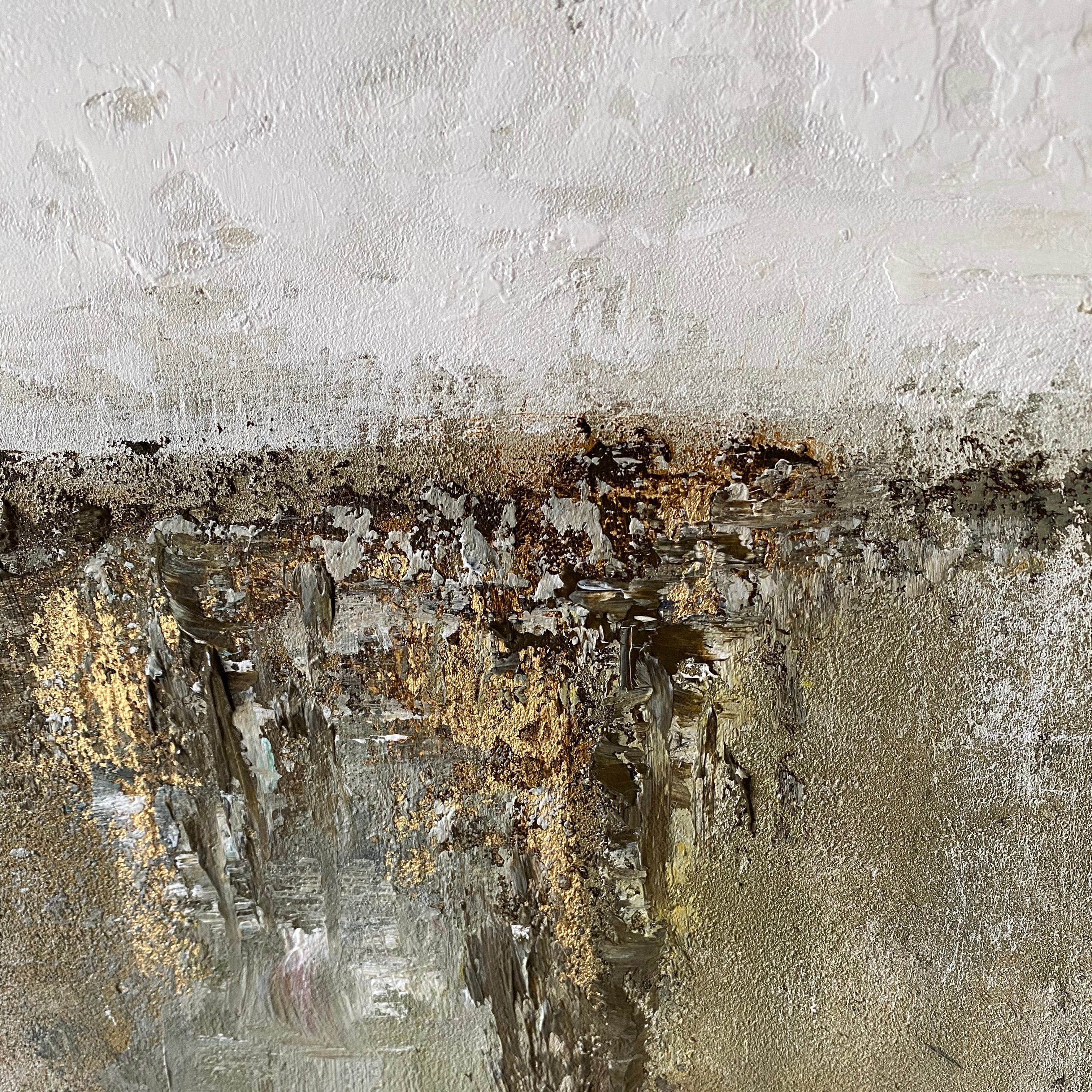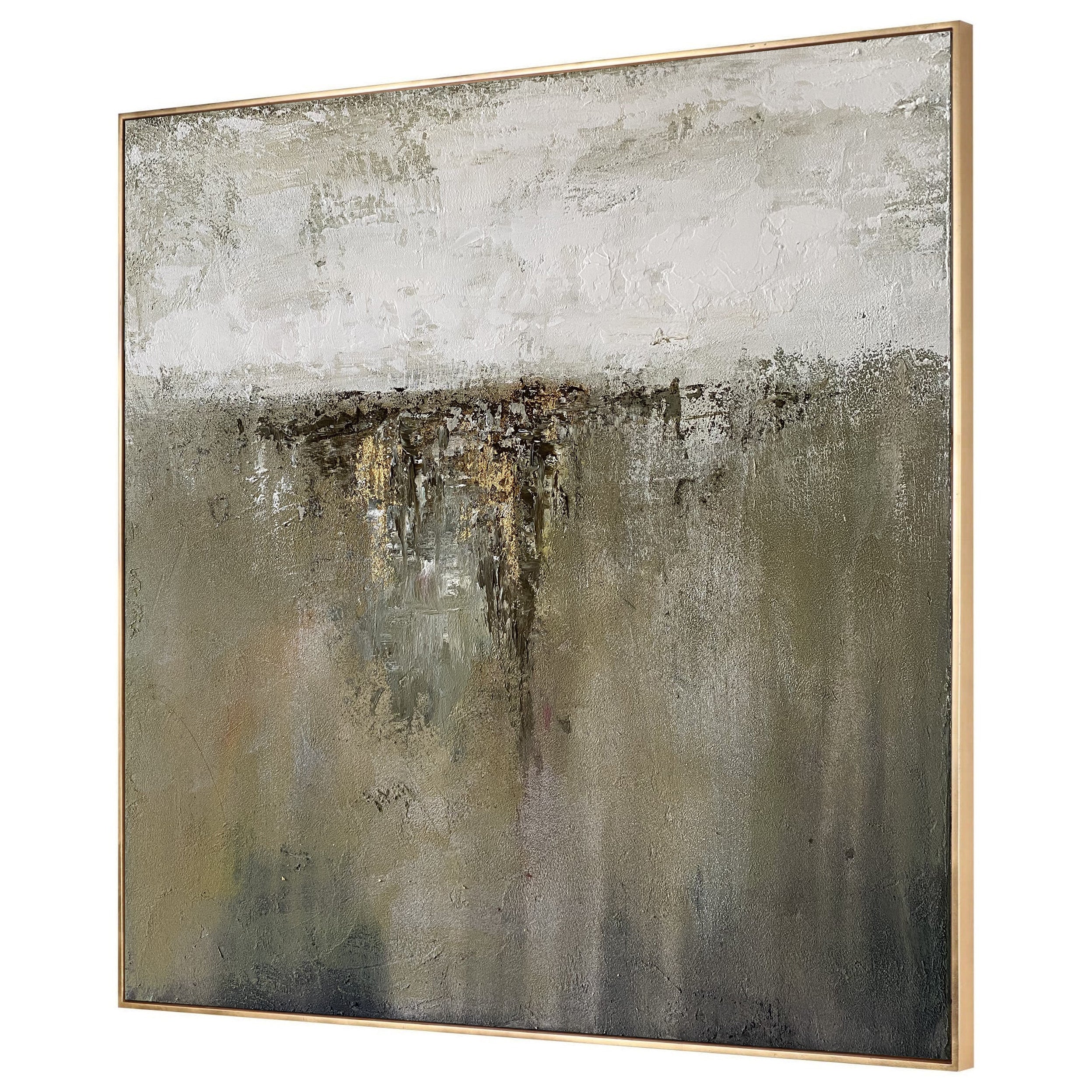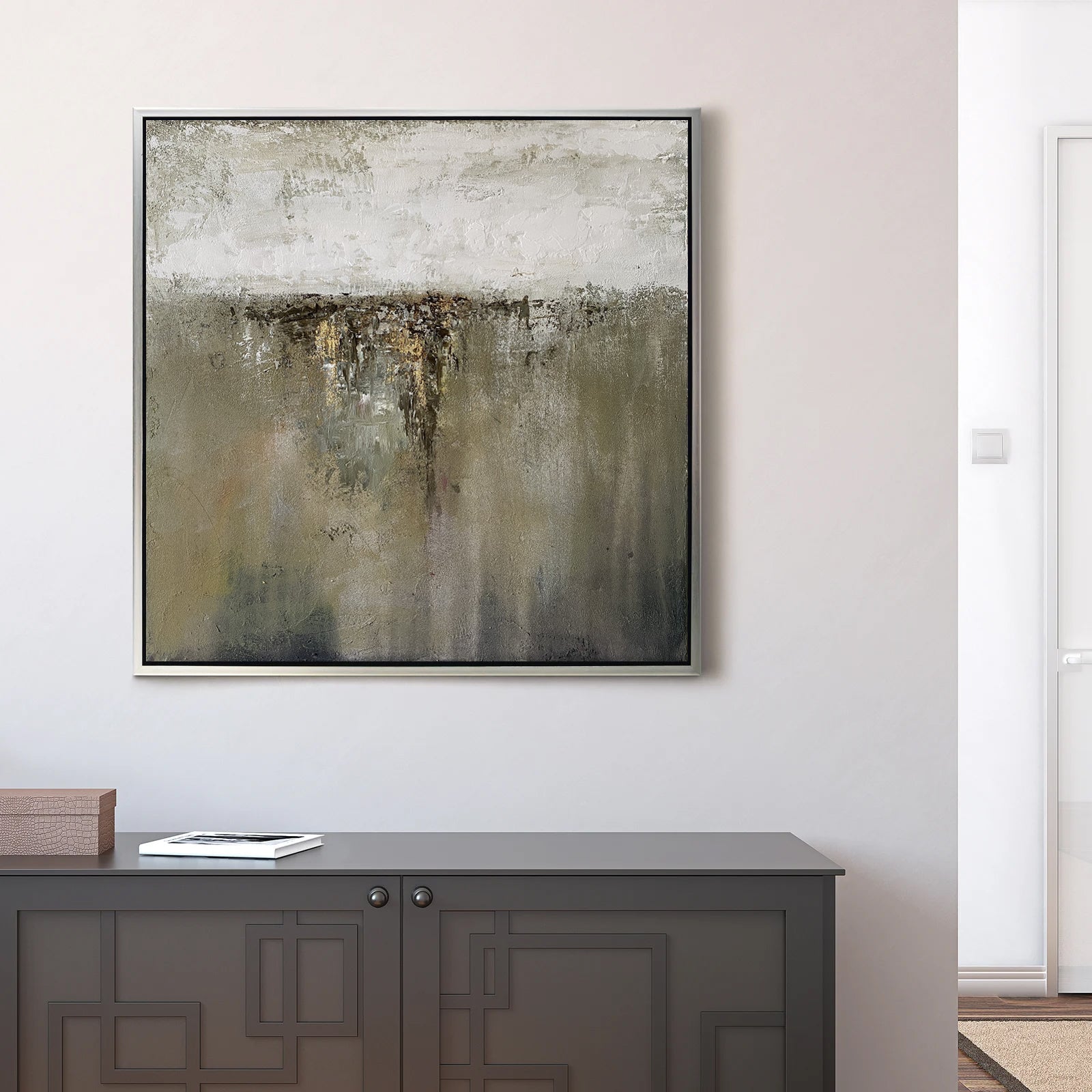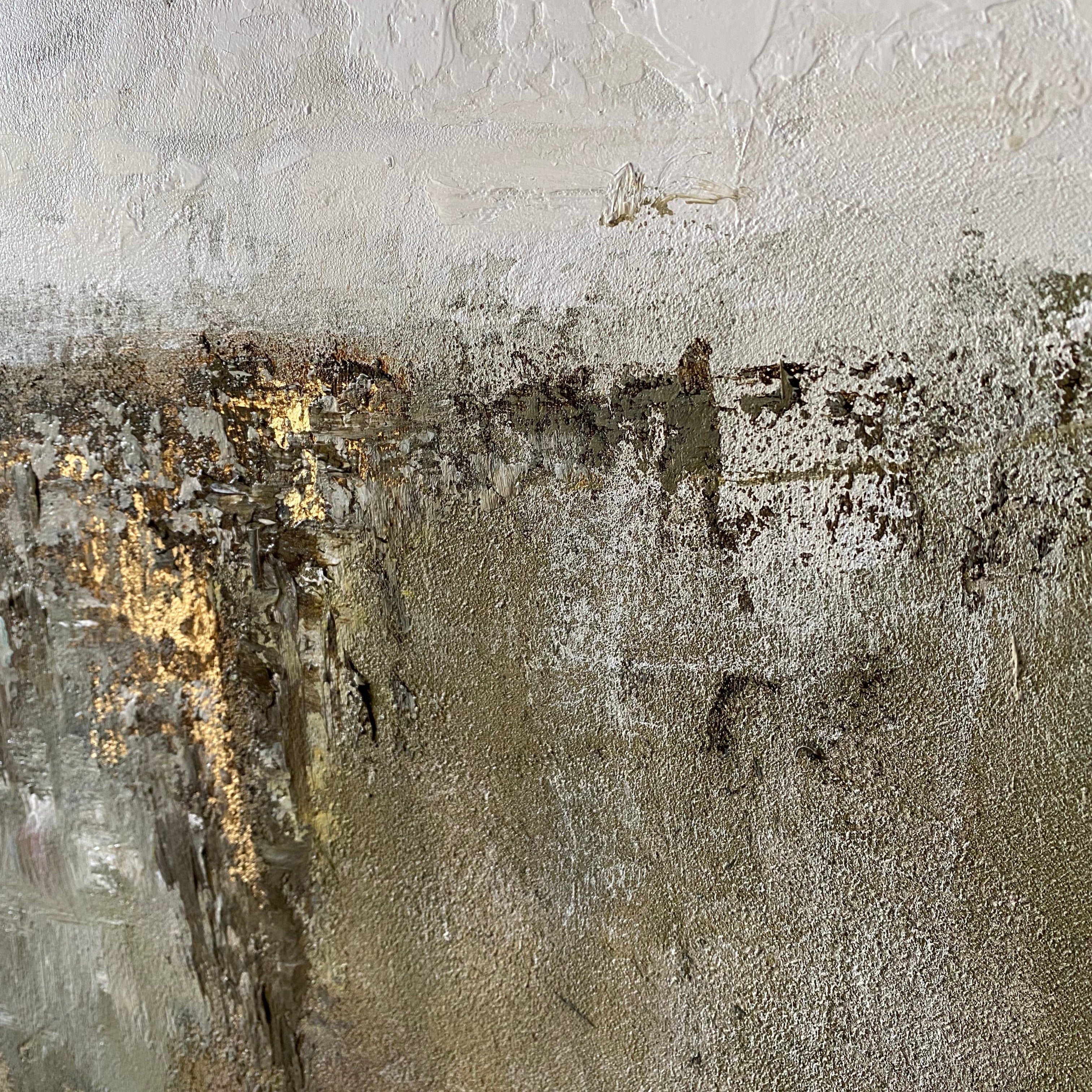 Verleihen Sie Ihrem Raum mit dieser neutral strukturierten abstrakten Landschaft Ruhe. Handgemaltes Impasto sorgt für Bewegung in Oliv, Taupe und Greige, mit Anthrazit als Grundierung und einem dezenten Goldakzent. Der minimalistische Horizont passt zu modernen, skandinavischen und Wabi-Sabi-Interieurs und setzt einen ruhigen Blickfang über Sofa, Bett oder Konsole. Dieses große Leinwandbild ist gerahmt und sofort hängbar. Es verleiht Wohnzimmer, Schlafzimmer oder Büro erdigen Luxus und zeitlosen Stil.