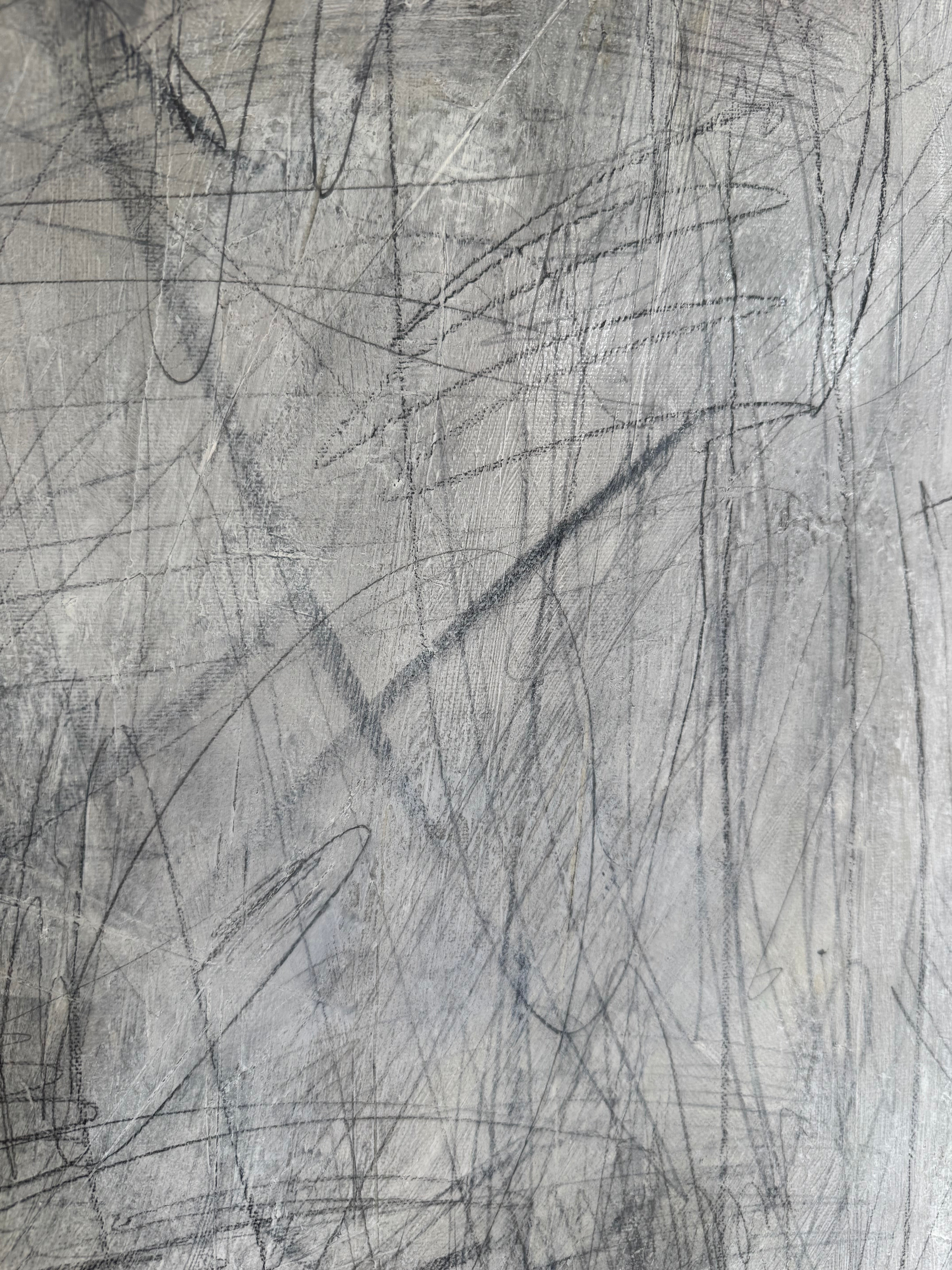 Erhöhen Sie Ihren Wohnraum mit diesem minimalistischen abstrakten Gemälde, das ein strukturiertes Zusammenspiel von Grau- und Weißtönen zeigt. Das handgemalte Design zeigt chaotische und doch beruhigende lineare Striche, die eine perfekte Mischung aus modernem Expressionismus und subtiler Eleganz darstellen. Dieses gerahmte Bild eignet sich ideal für zeitgenössische oder minimalistische Interieurs und verleiht Wohn-, Schlaf- oder Büroräumen einen einzigartigen, raffinierten Touch. Das aus hochwertigen Materialien gefertigte Kunstwerk bietet einen zeitlosen und vielseitigen Akzent für jeden Raum.
